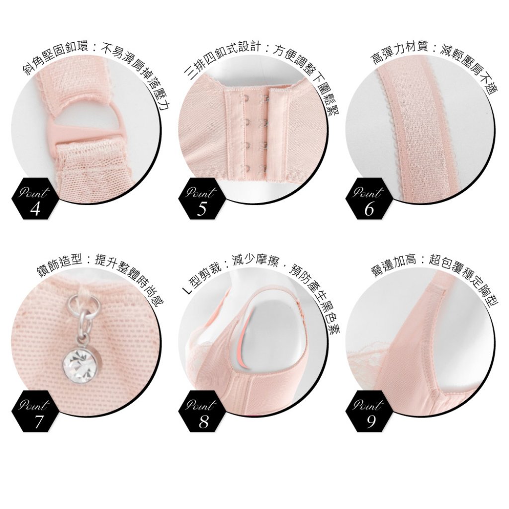 • IG風柔美櫻花色系蕾絲增添時尚氛圍,展現胸型完美視覺