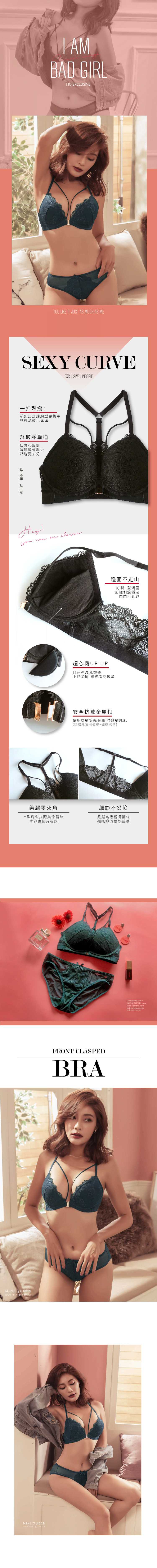 性感深溝前扣式細帶蕾絲美背成套內衣