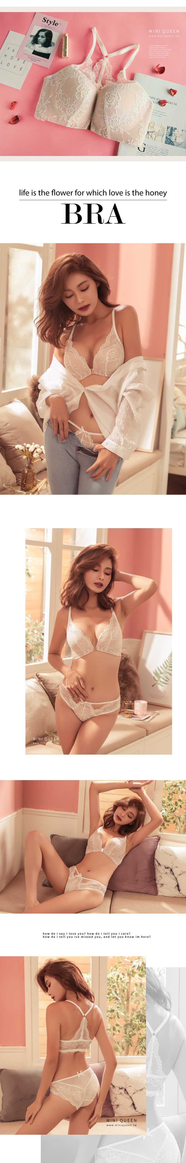 無鋼圈【獨家】特務甜心-Mini Queen舒壓無鋼圈前扣集中蕾絲美背成套內衣 (膚底白色 65-90 A-G)