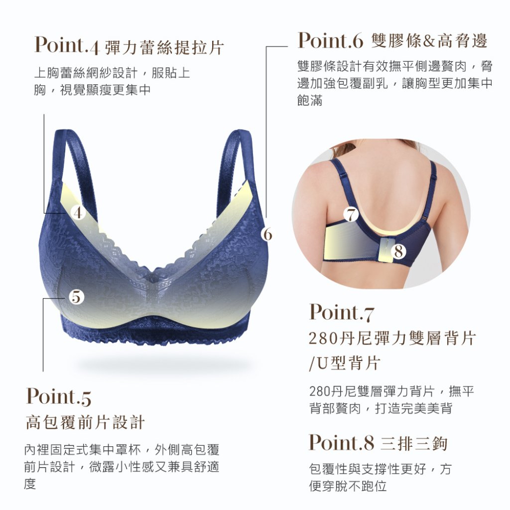 高規格三排三鉤設計,支撐美胸安心不跑位