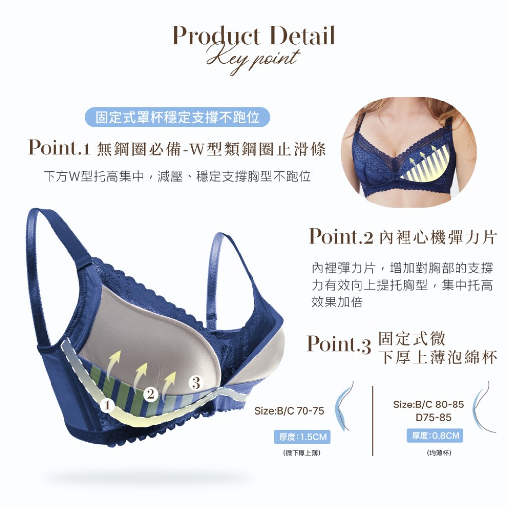 可蘭霓Clany 無法抗拒心機涼感包覆無鋼圈B-D內衣 8052 藍色