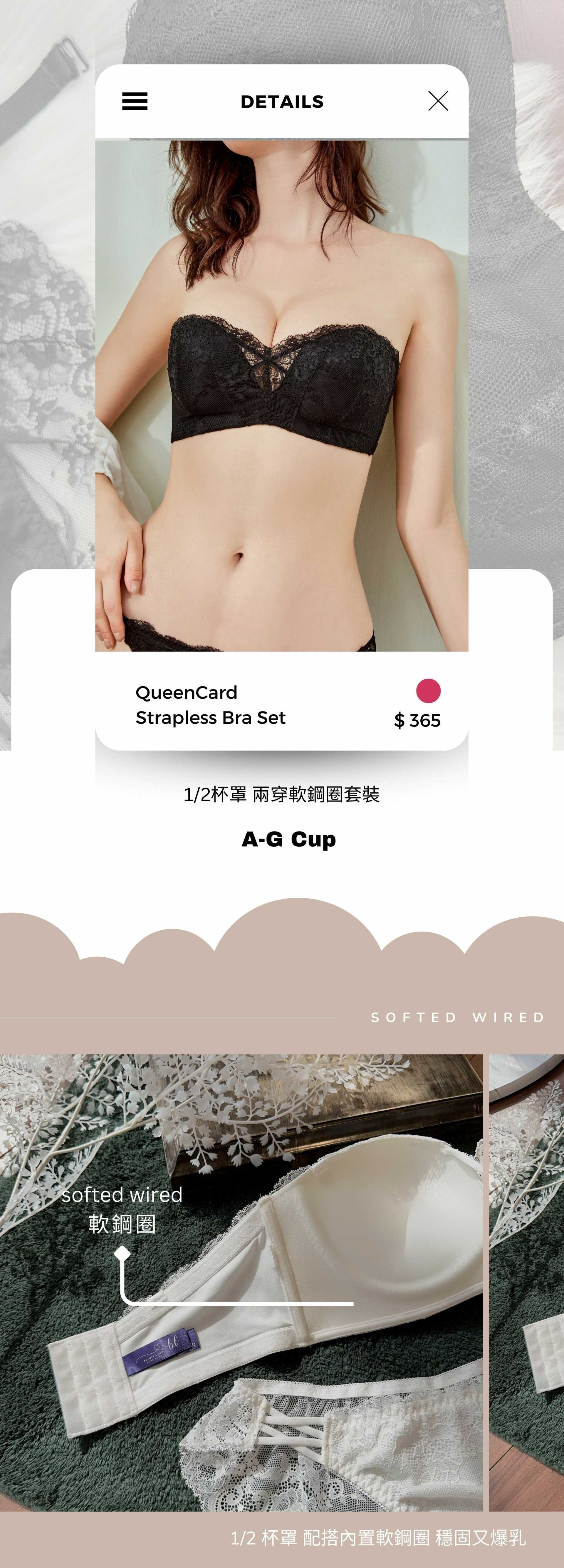 呢款QueenCard 無肩帶內衣 選用精緻蕾絲面料