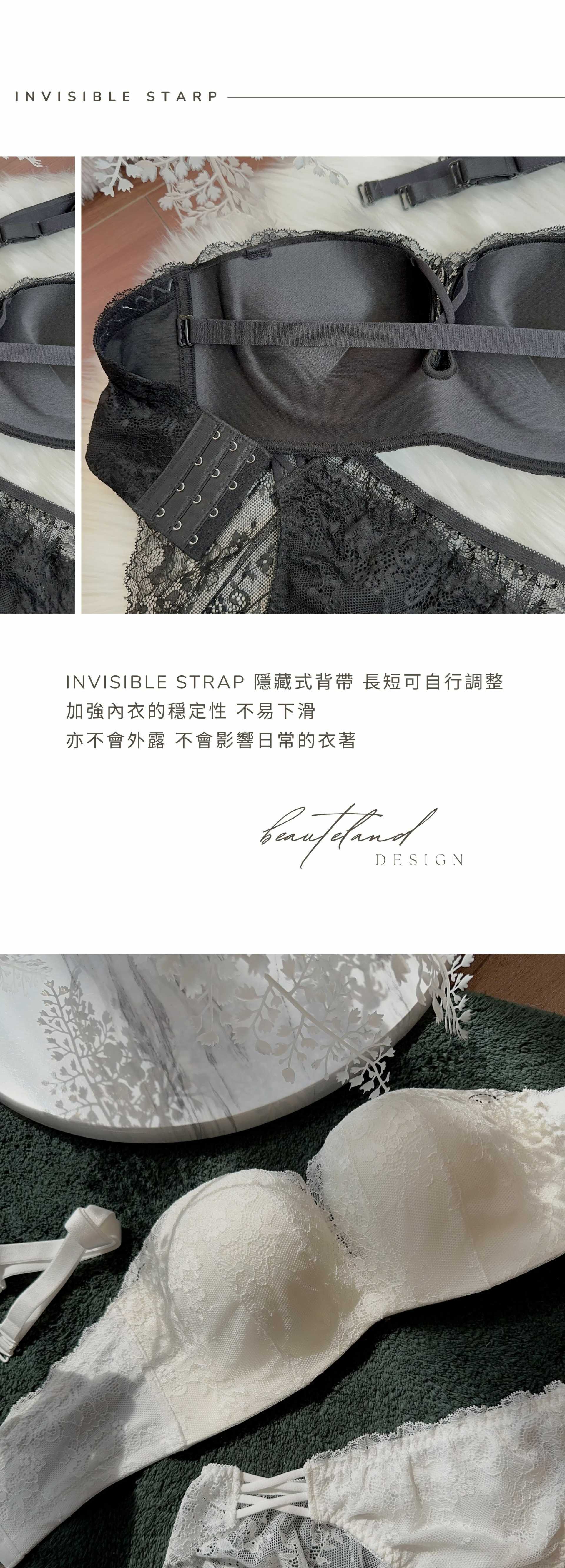 呢款QueenCard 無肩帶內衣 選用精緻蕾絲面料