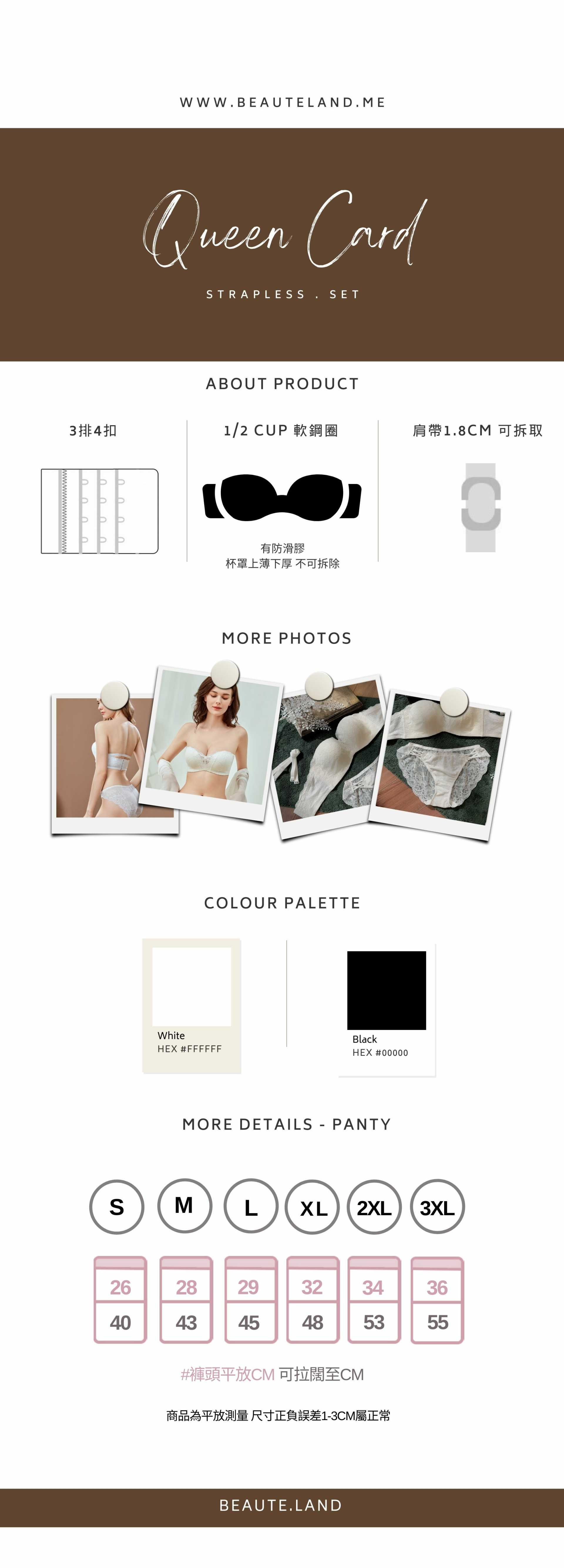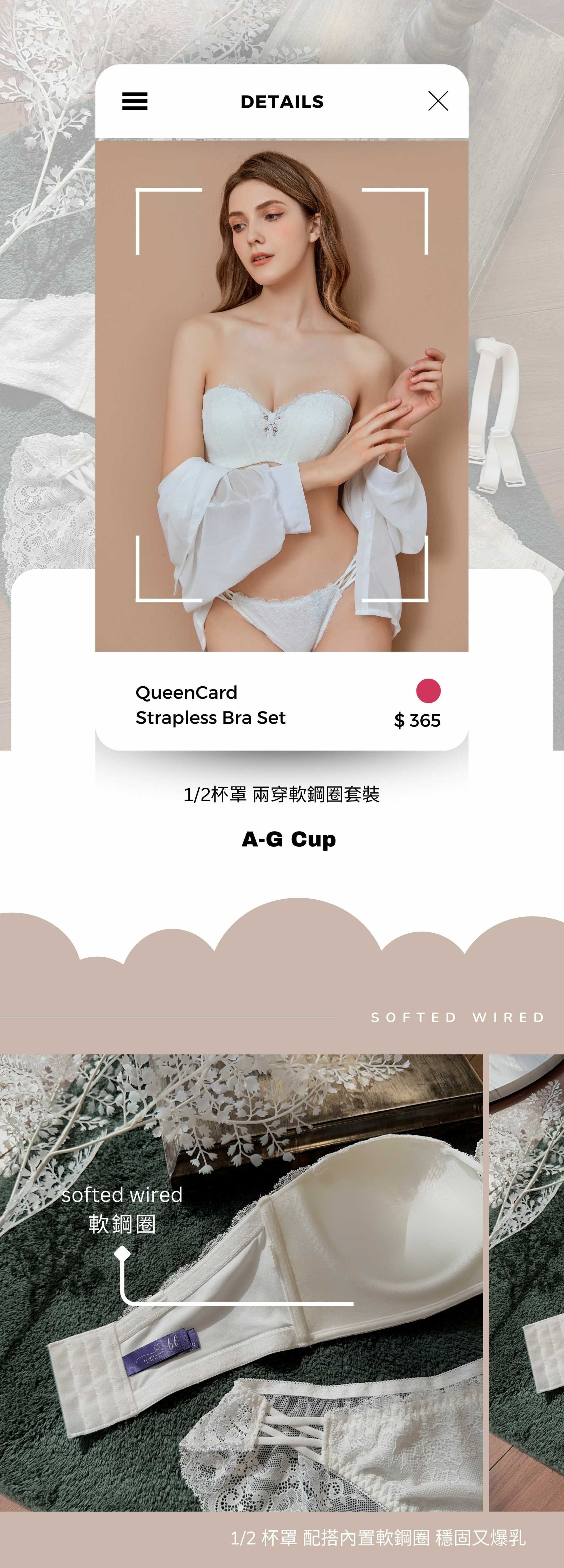 呢款QueenCard 無肩帶內衣 選用精緻蕾絲面料