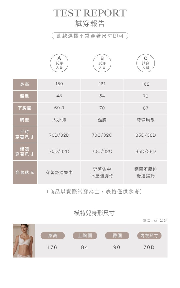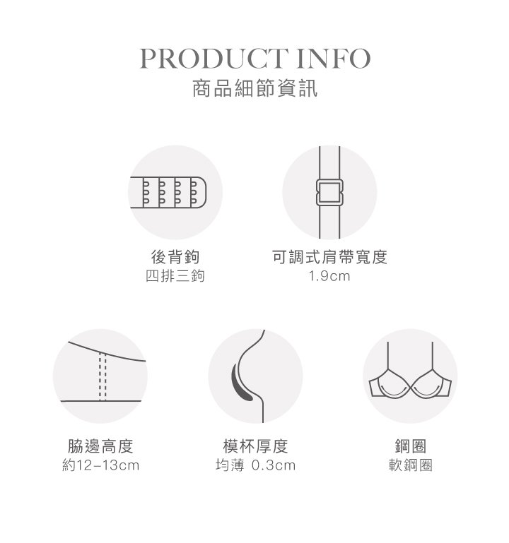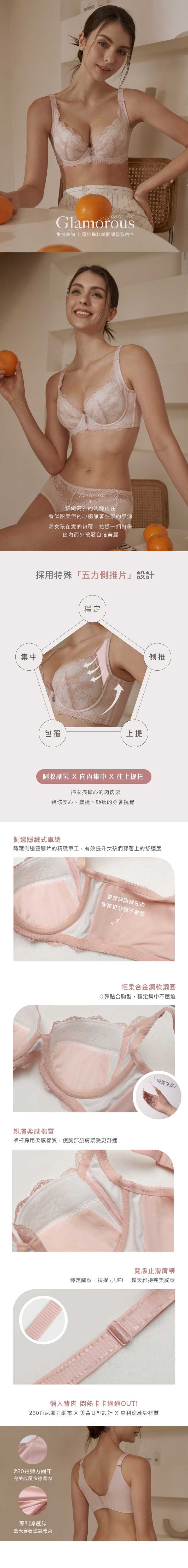 側壓片特殊菱形剪裁:集中托高胸型,穩定包覆副乳