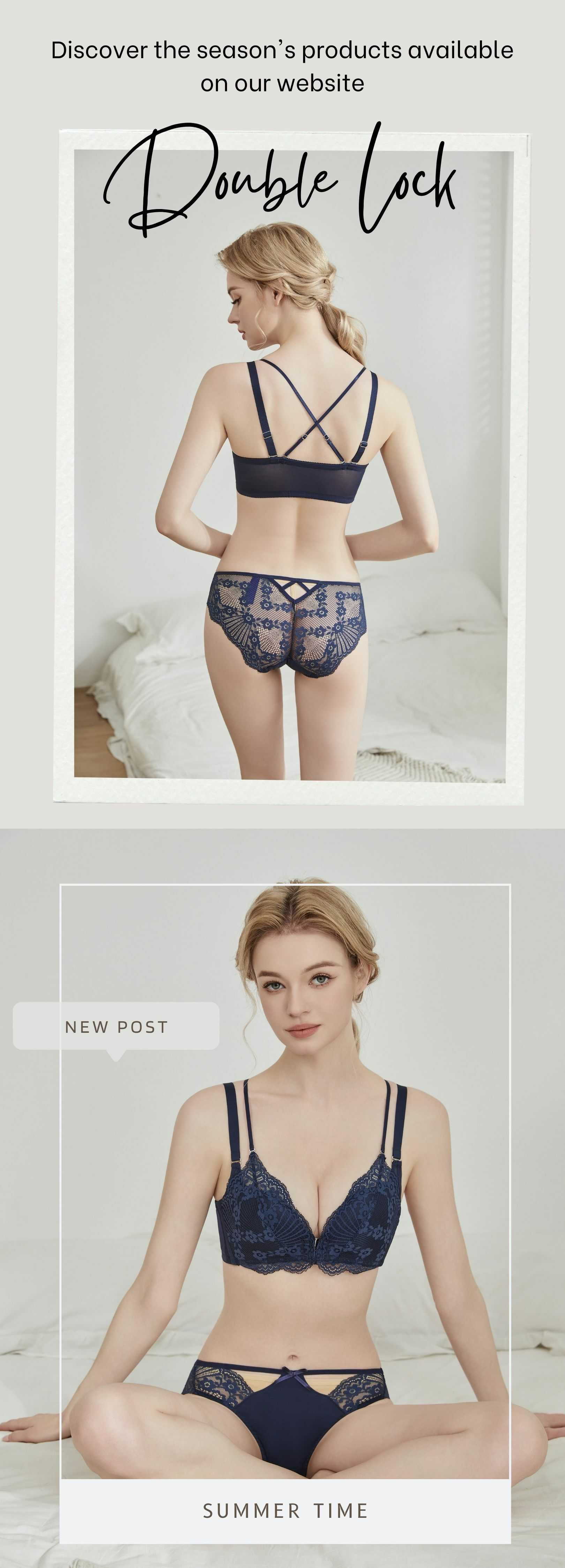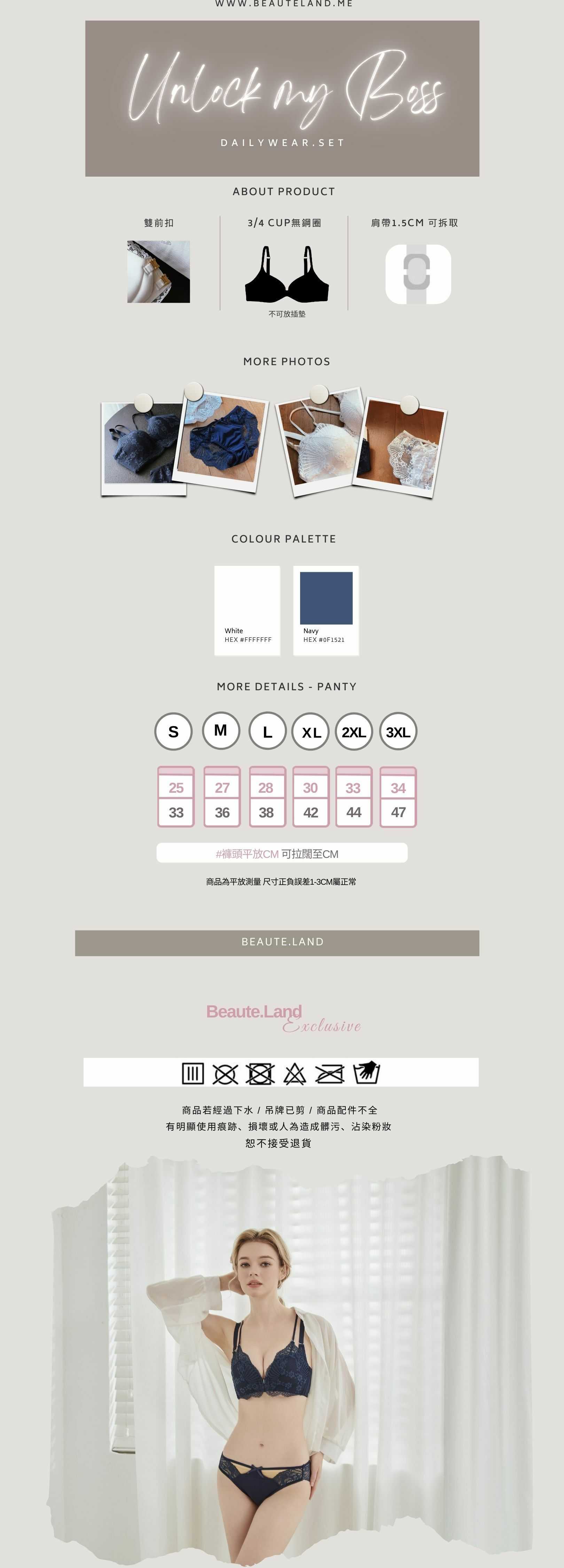 l獨家l Unlock my Boss 雙前扣無鋼圈套裝 深藍色