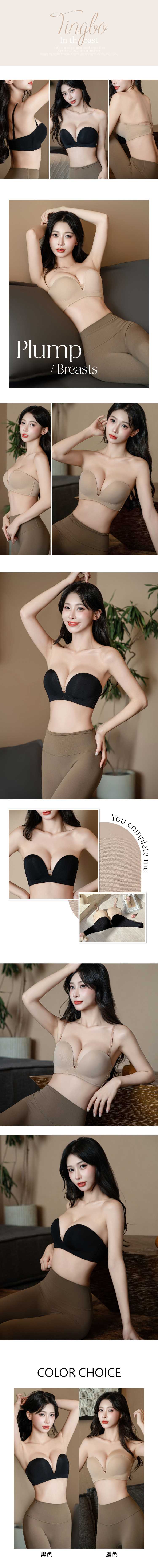 ✦脊心中心處加縫的定型紗布,讓胸部弧線更顯飽,極致乳溝湧現