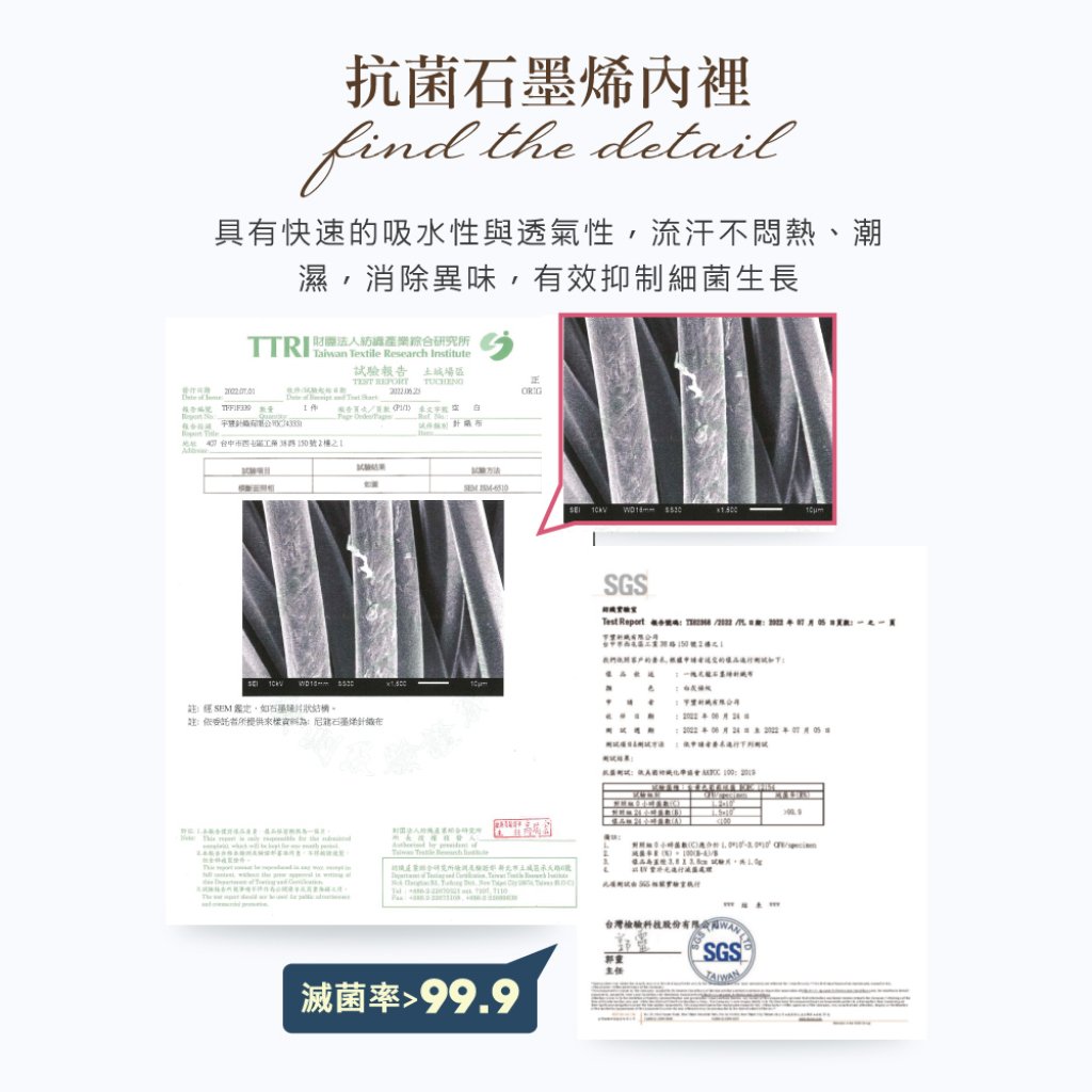 石墨烯纖維內裡,透氣抗菌保持肌膚乾爽清新