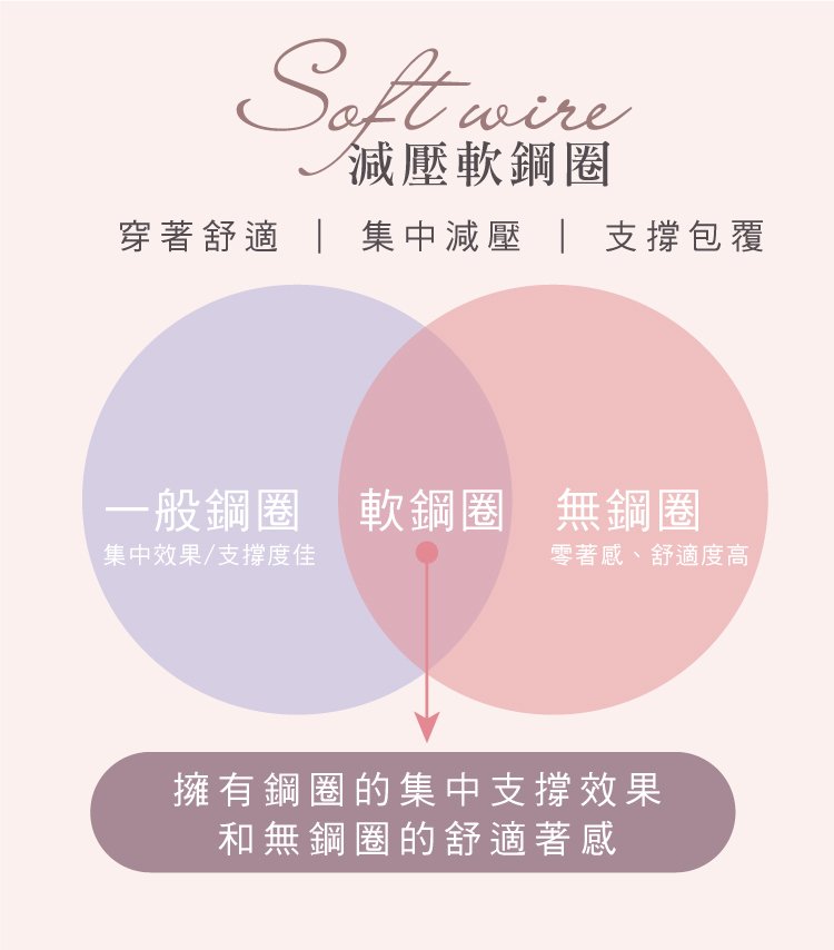 輕盈軟鋼圈,減壓舒適穩定支撐