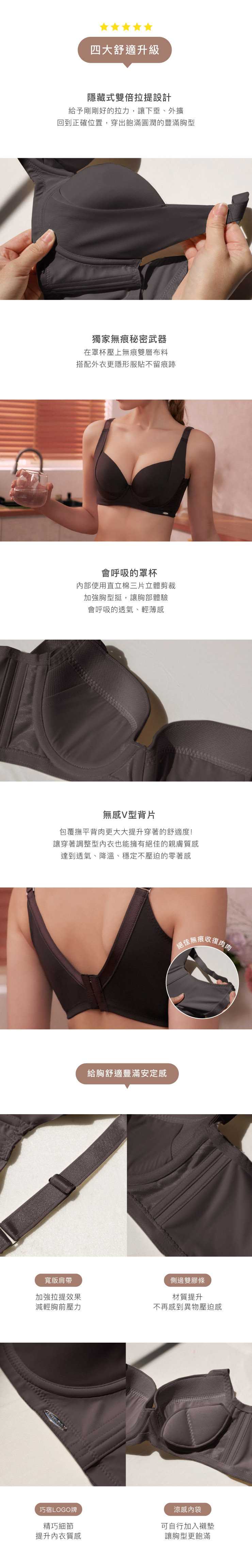 罩杯無痕的秘密武器:罩杯壓上無痕雙層布料,搭配外衣更隱形服貼不留痕跡