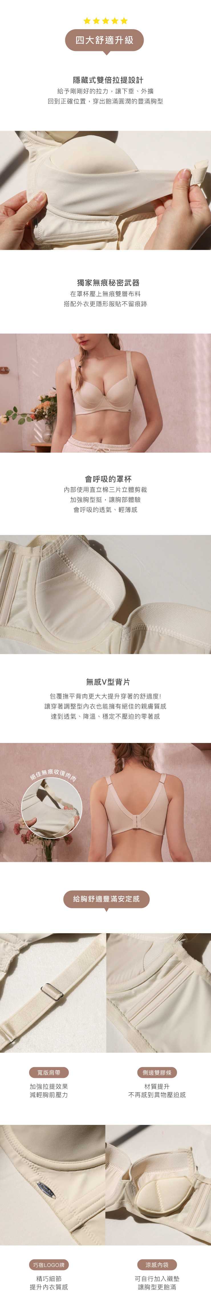 罩杯無痕的秘密武器:罩杯壓上無痕雙層布料,搭配外衣更隱形服貼不留痕跡