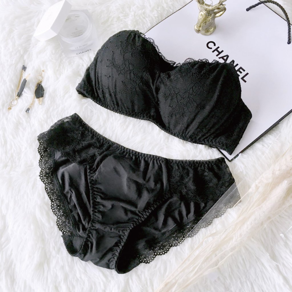 平口內衣-後扣升級版-百搭小妞-Mini Queen平口爆乳蕾絲成套內衣-黑色(65-90ABCDEFGH)
