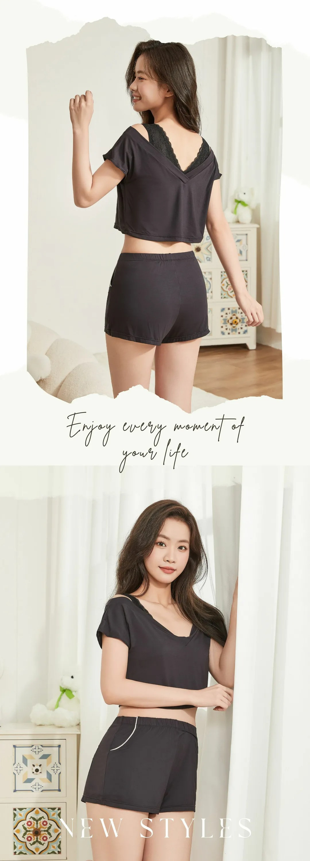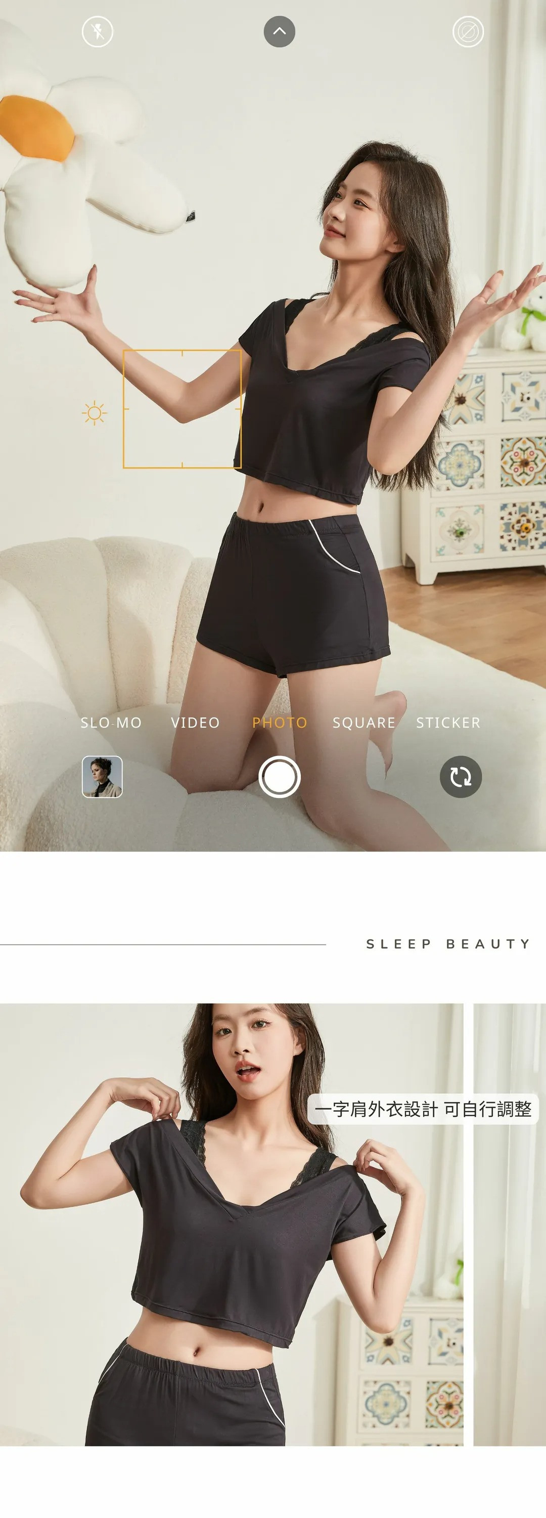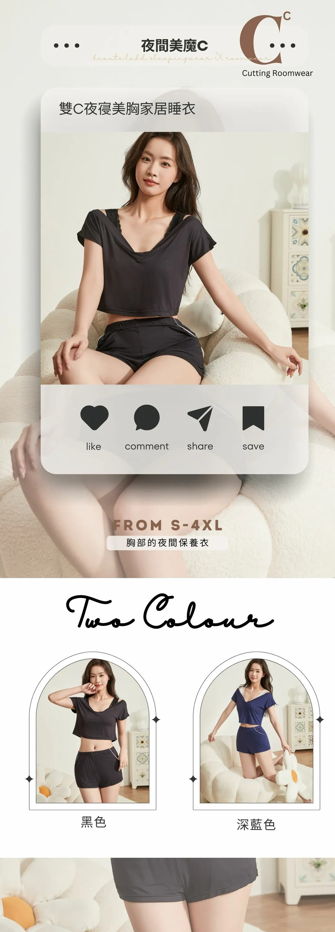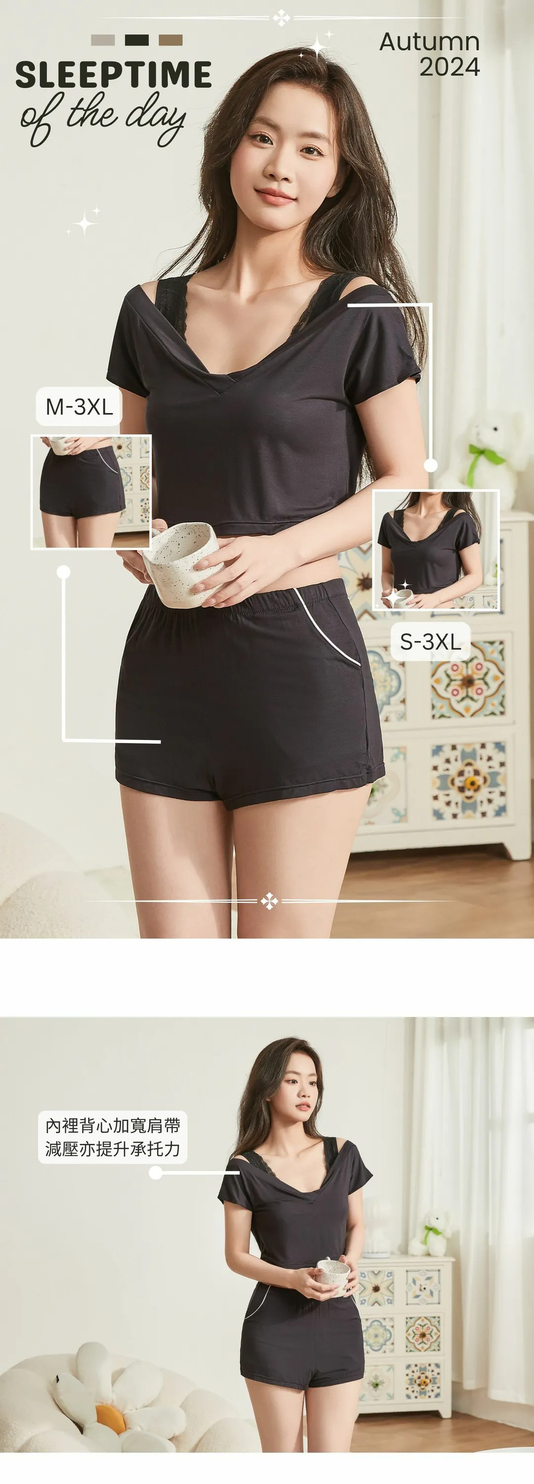 l獨家l 夜間美胸C 睡眠家居服套裝 黑色