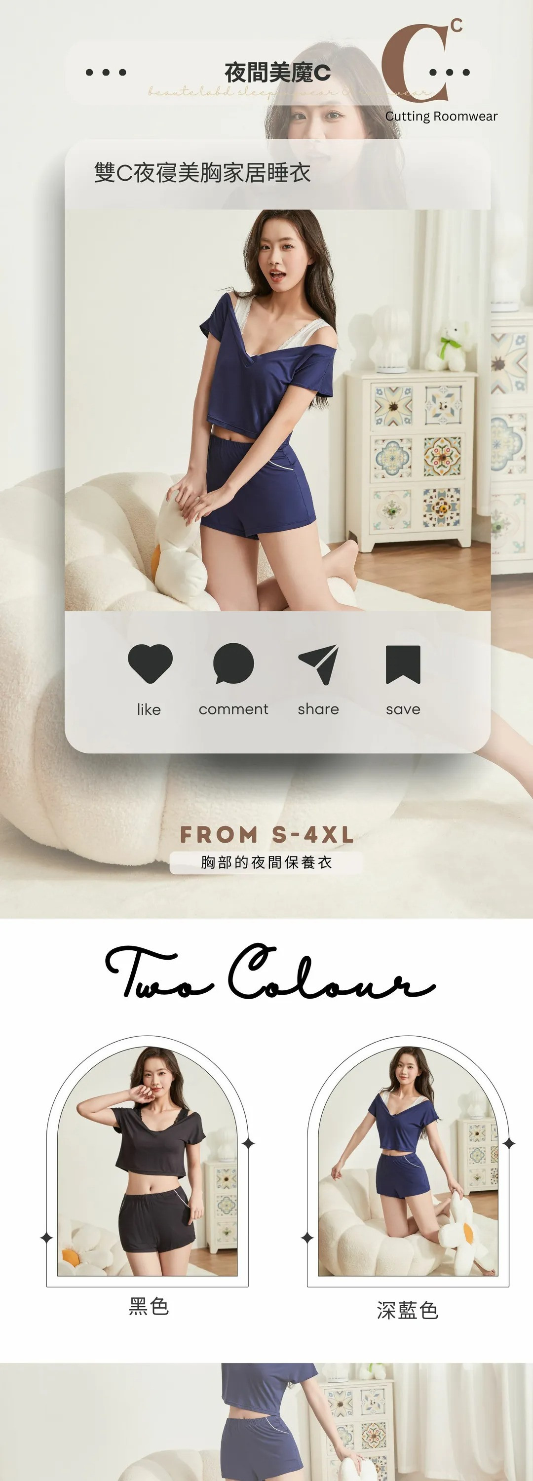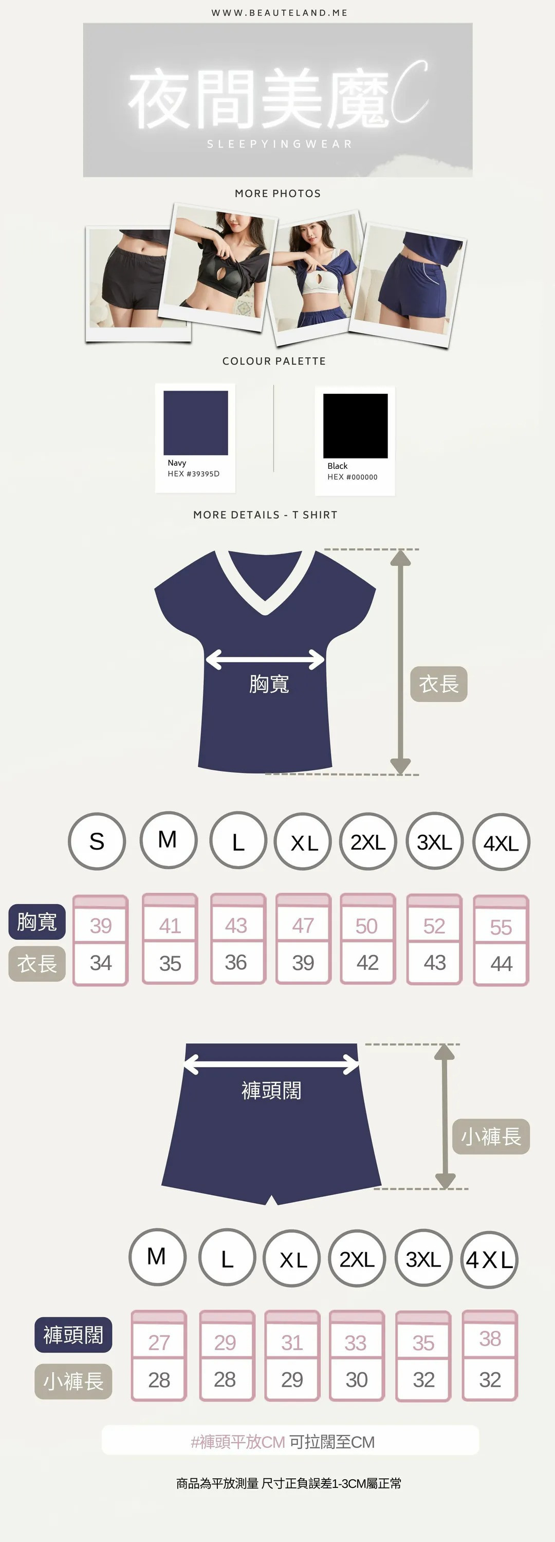 深藍色 上衣 S-4XL 小褲 M-3XL
