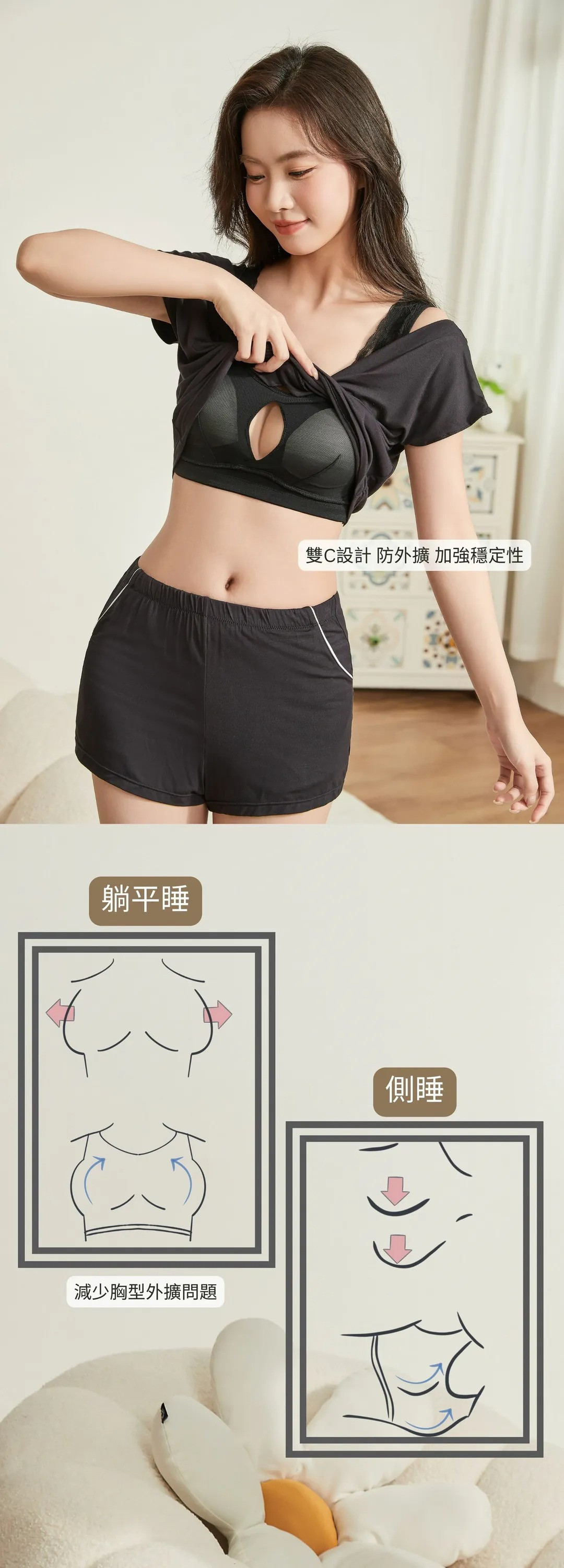 內裡雙C設計小背心 躺平睡著 也保持穩固胸型 減少外擴情況