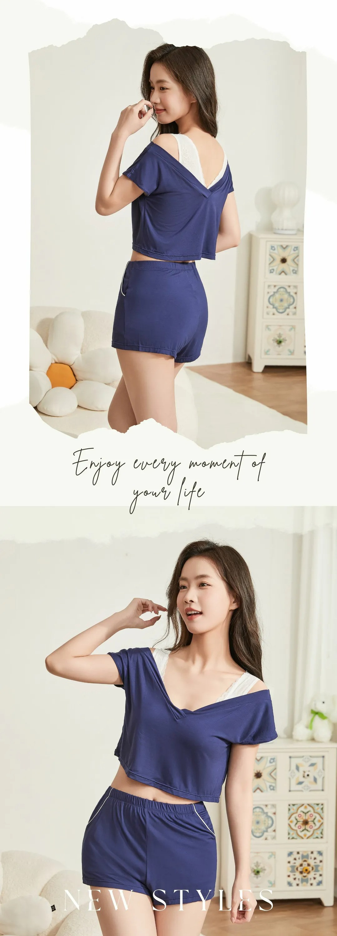 l獨家l 夜間美胸C 睡眠家居服套裝 深藍色