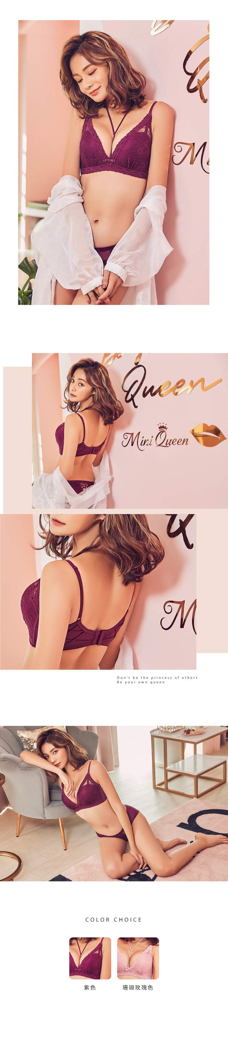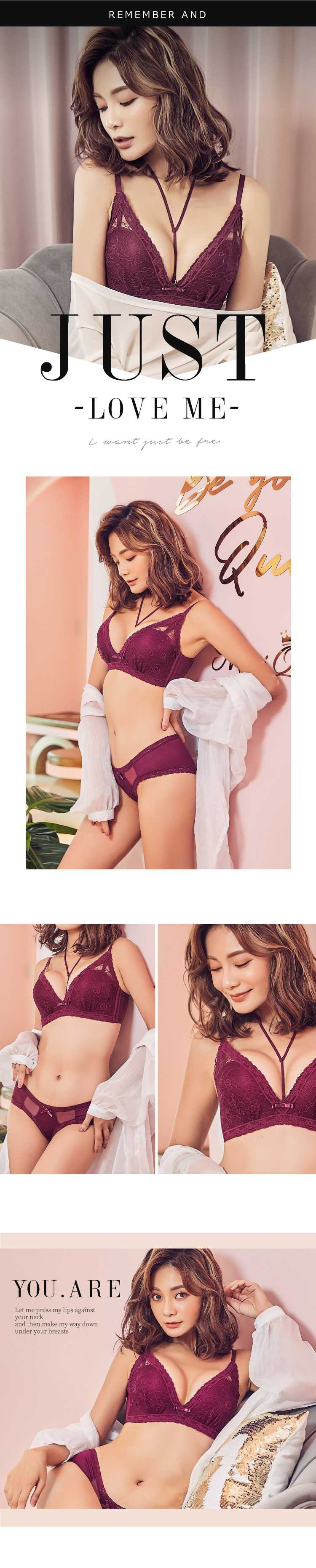 無鋼圈【獨家】叛逆芭比 機能包覆無鋼圈深V細帶成套內衣褲 (紫色 65-90 A-H)