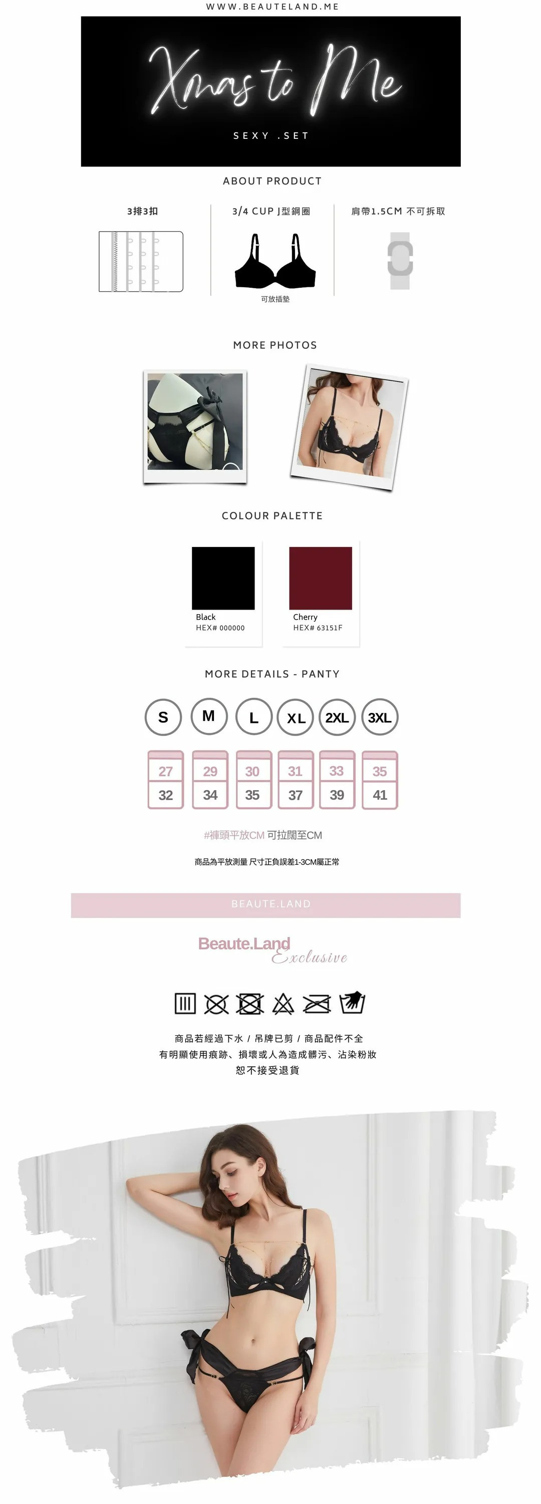 l獨家l Xmas to me 薄蕾絲鏤空套裝 曜石黑