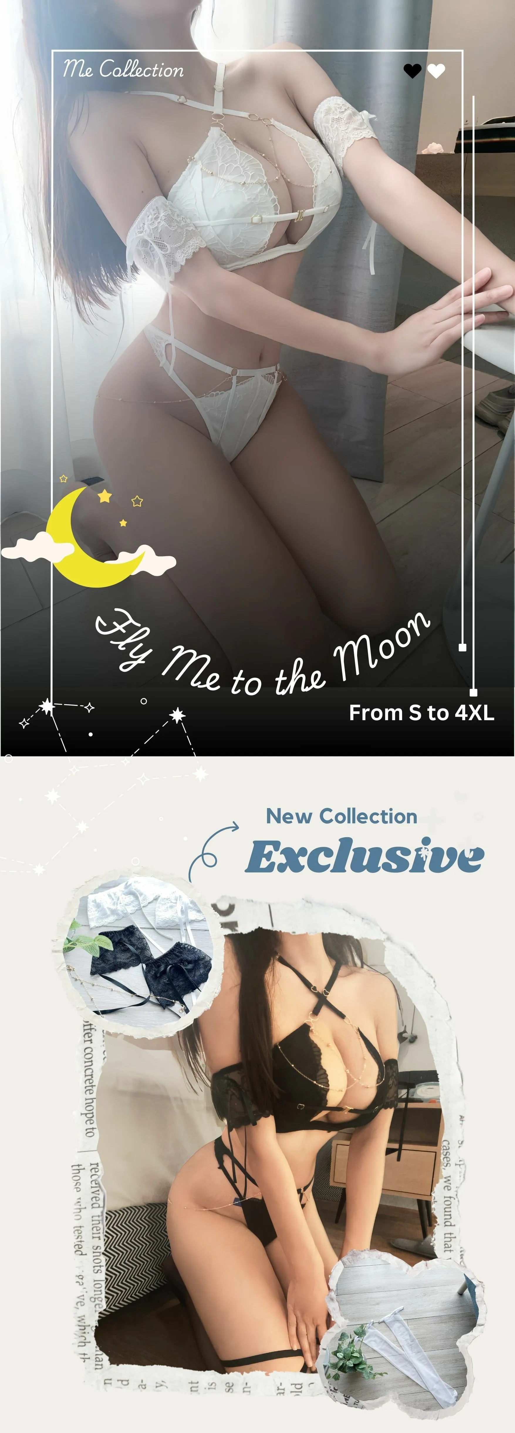 ❖預購❖ Fly Me to the Moon 薄蕾絲性感套裝 閃耀白