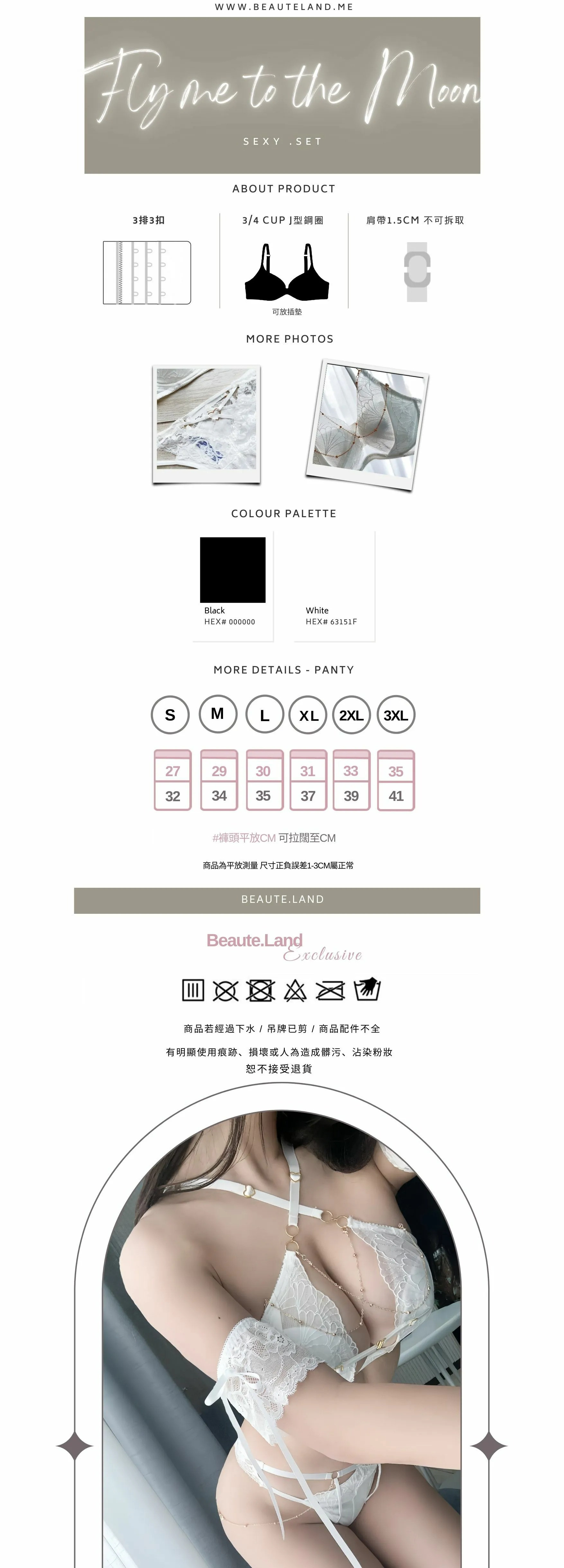 l獨家l Fly Me to the Moon 薄蕾絲性感套裝 閃耀白