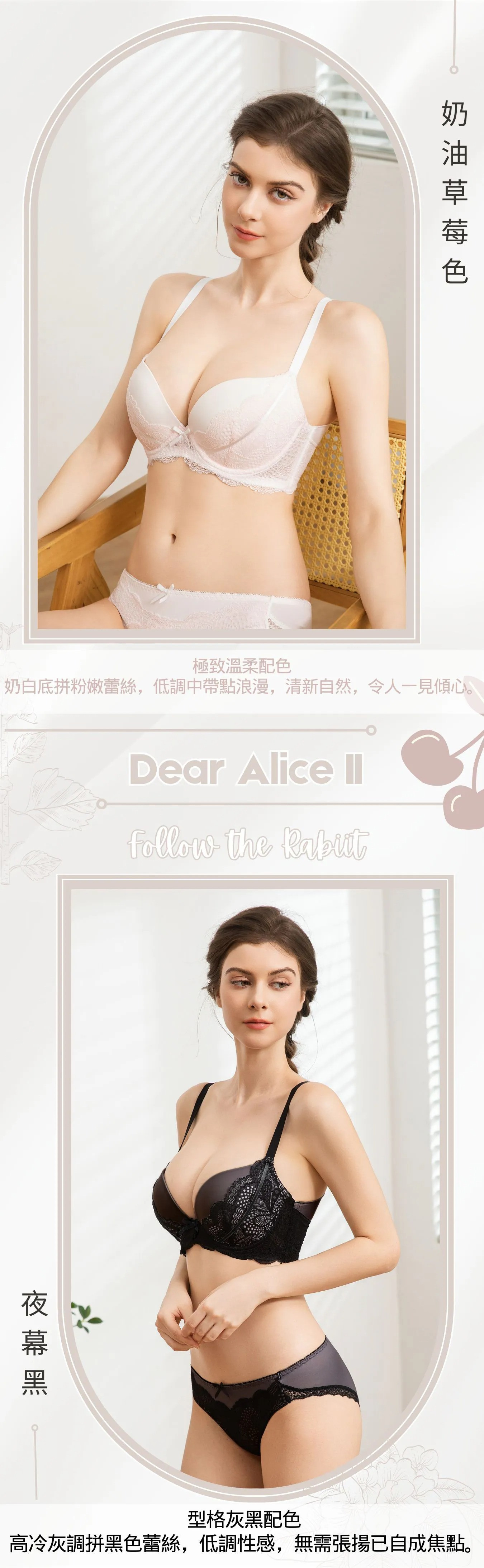 l獨家l Dear Alice II : Follow the Rabbit素面有鋼圈內衣套裝 奶油草莓色