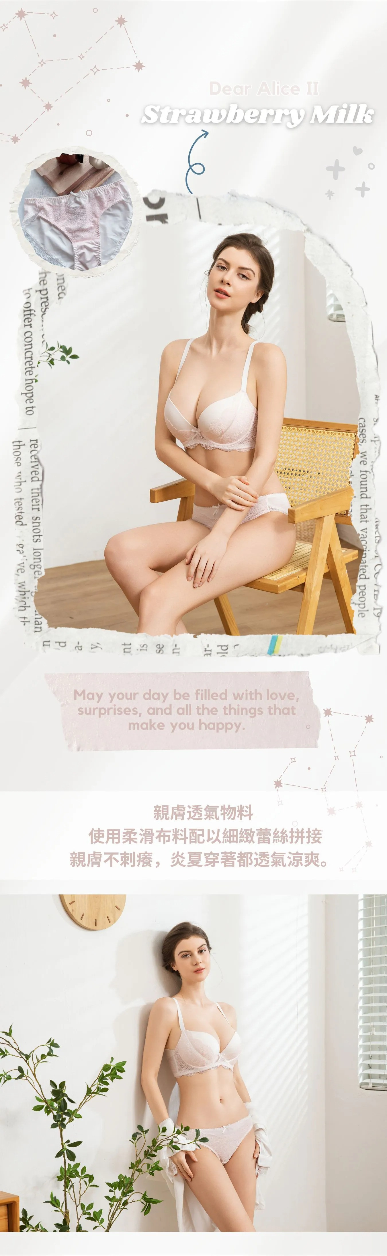 細膩的奶白色撞上粉色調  搭配精緻花邊蕾絲