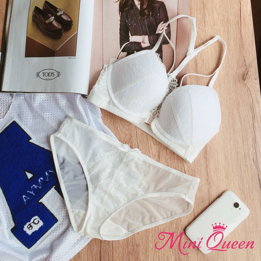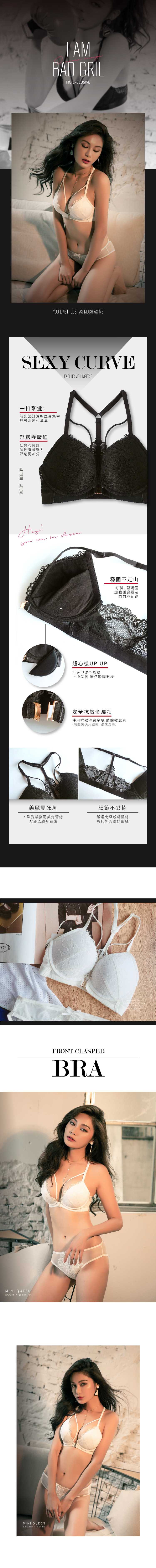 前扣內衣【獨家】魔幻VIVI_Mini Queen性感深溝前扣式細帶蕾絲美背成套內衣 (白65-90 A-G)