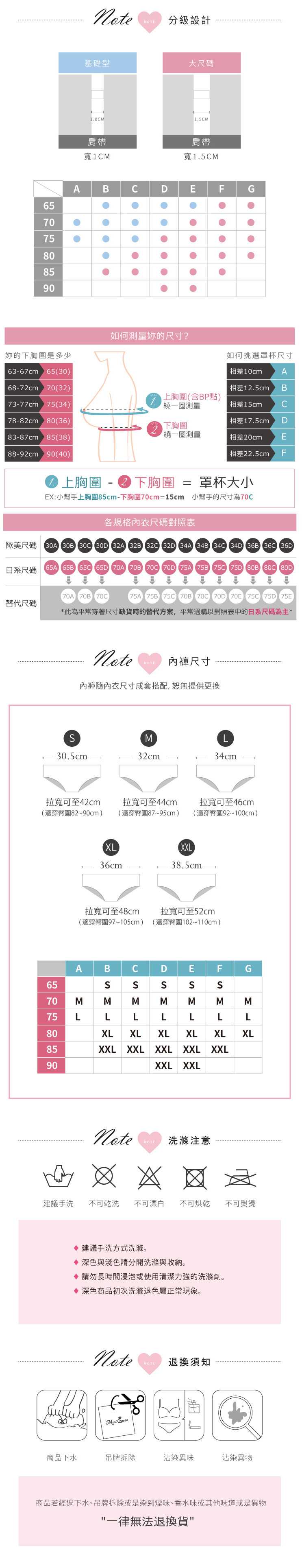 多段罩杯與下圍尺寸,滿足大小女孩需求!