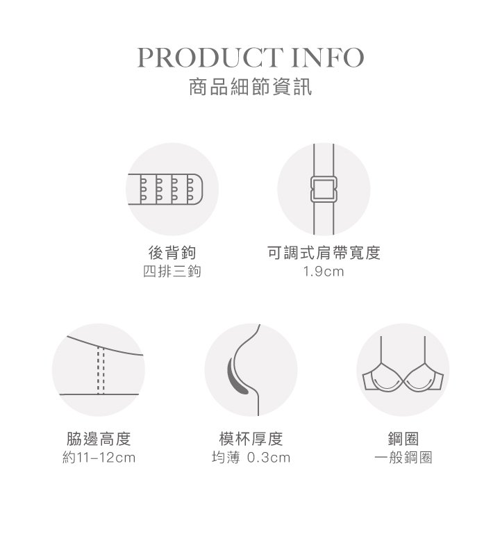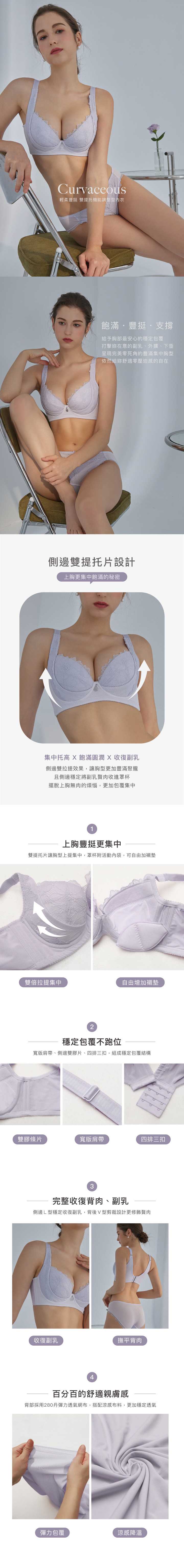 穩定包覆副乳:讓副乳乖乖向內集中不跑位,讓胸型更飽滿