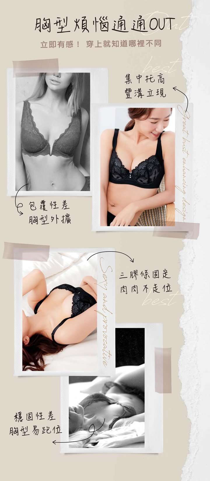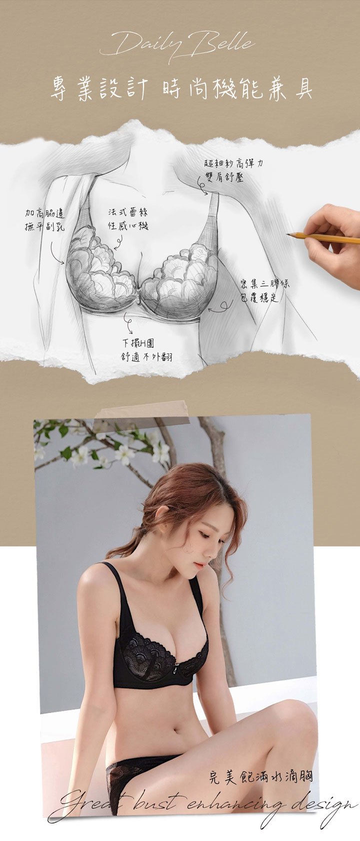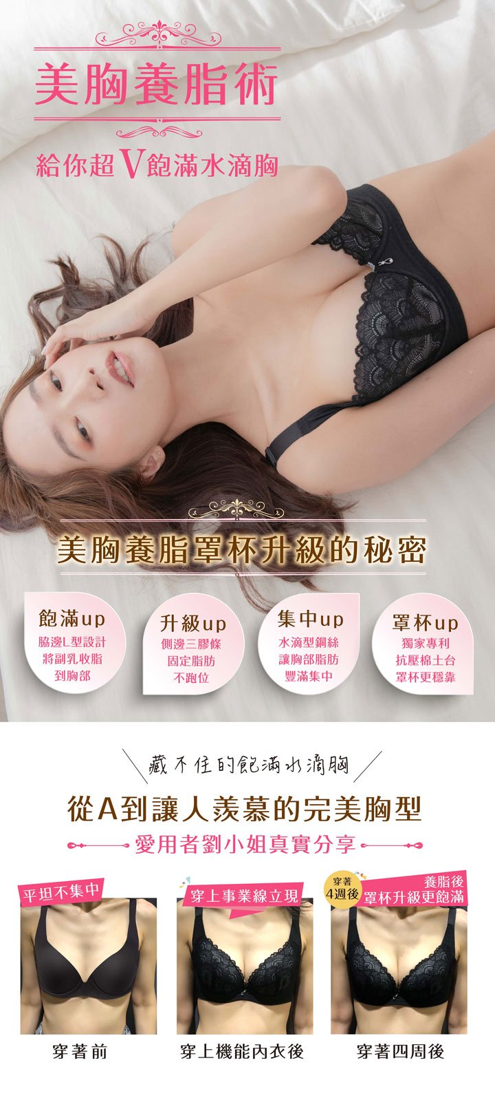 收脂水滴型鋼絲設計,不頂前胸不疼痛無壓迫感,視覺上胸型豐滿集中。