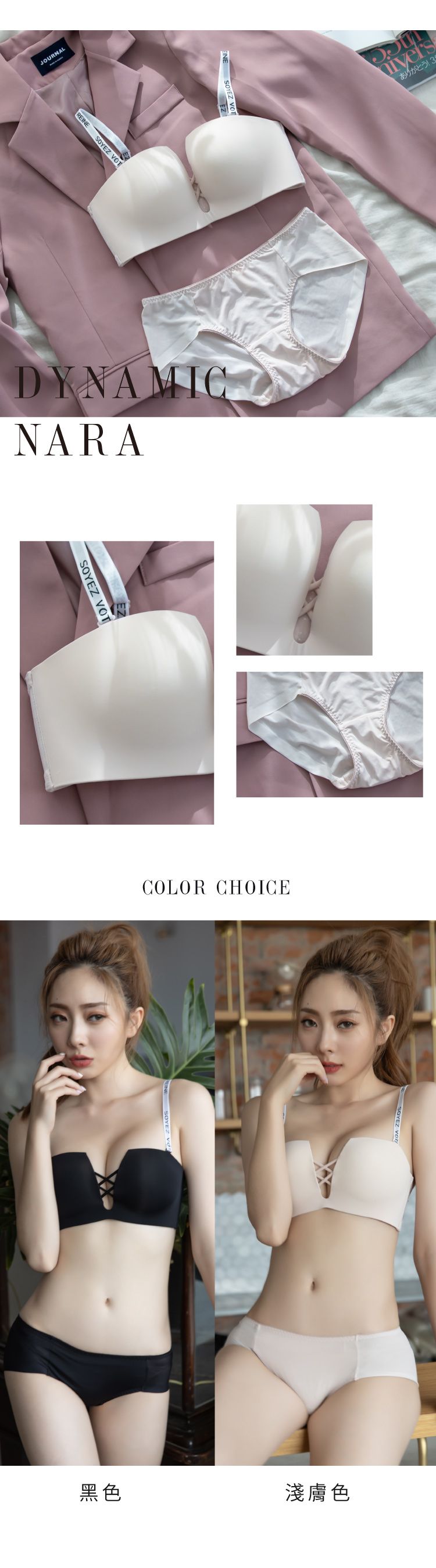 軟鋼圈【獨家】動感娜拉-Mini Queen無痕交叉細帶超集中四角杯軟鋼圈成套內衣褲(淺膚色65B-90C)