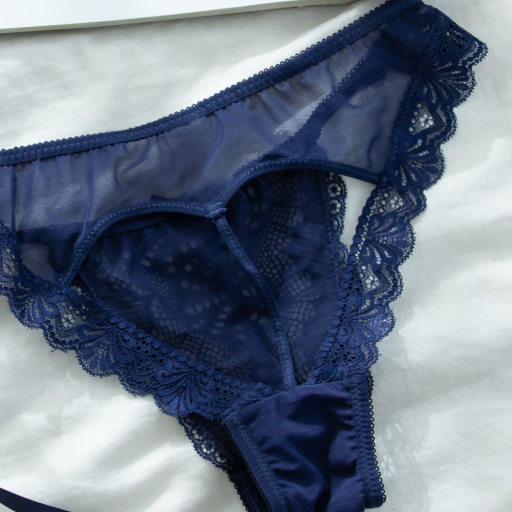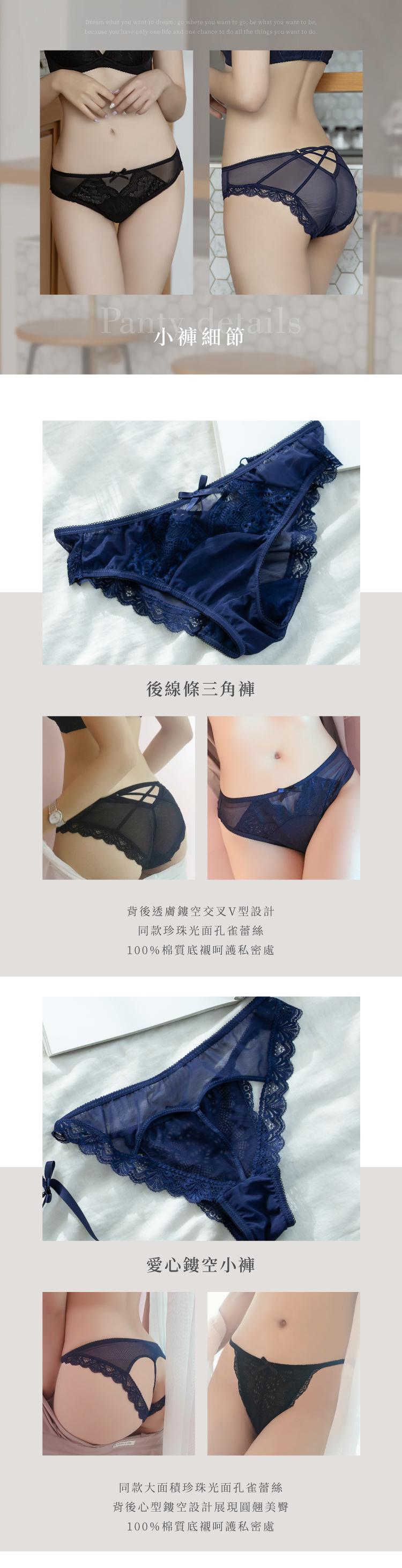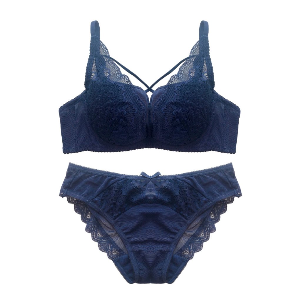 成套內衣褲【獨家】美人妮可-Mini Queen 珍珠光面立體蕾絲性感交叉細帶舒適包覆W鋼圈成套內衣褲 (藍色65B-95F )(薄杯)
