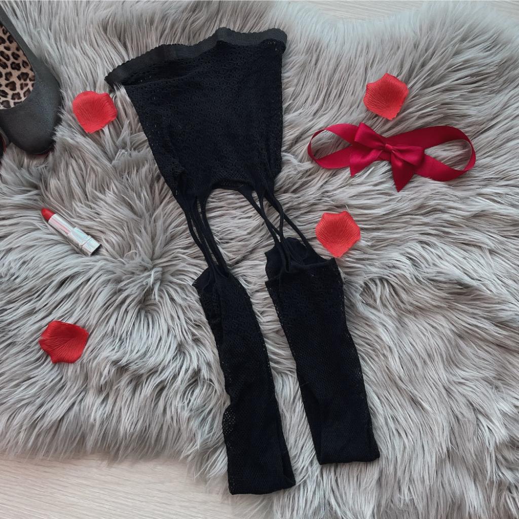 莫娜吻痕 連體網襪 黑色