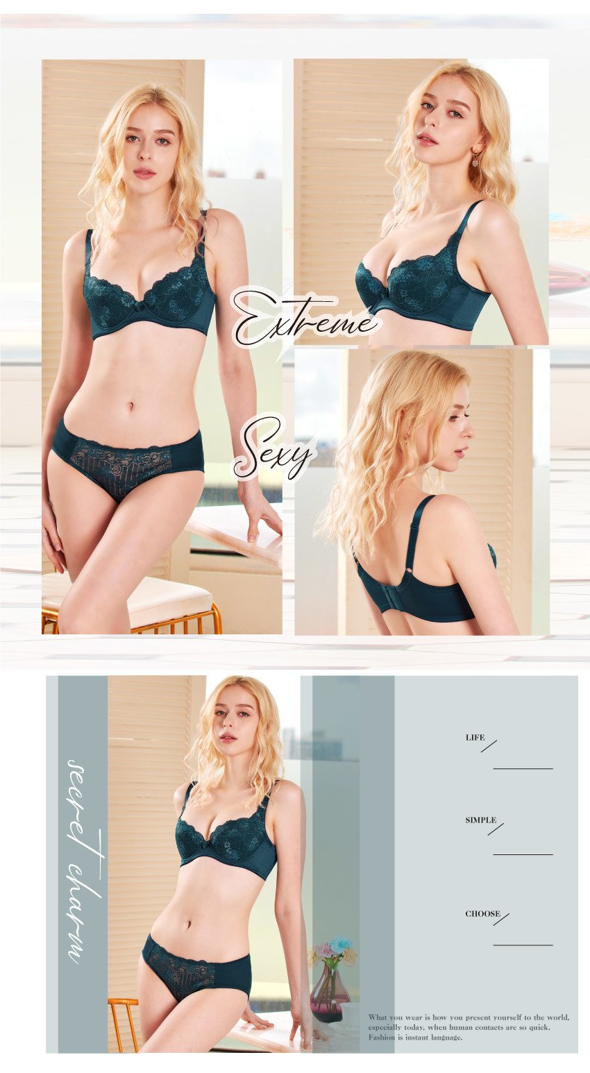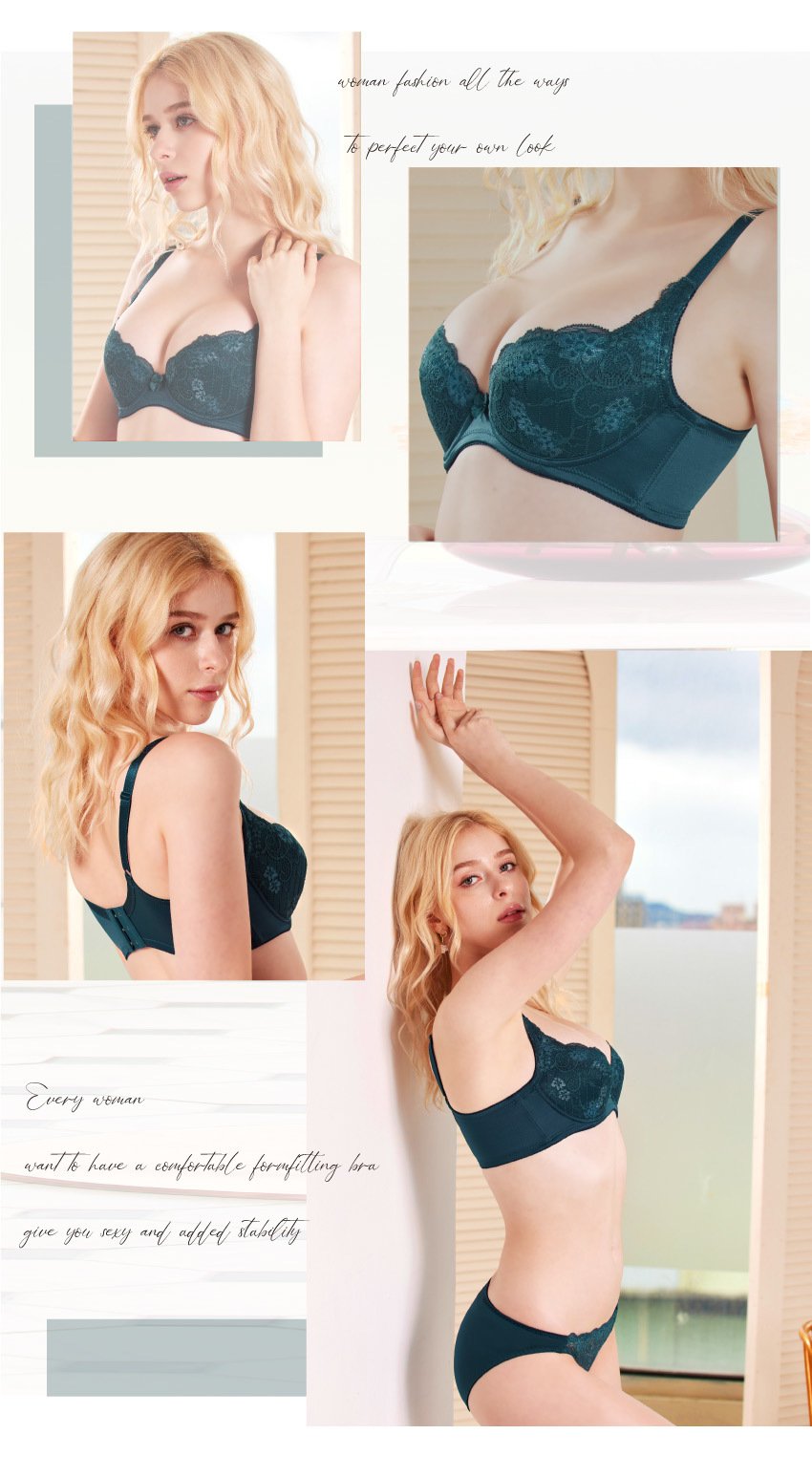 戀花蜜語深V系列內衣BCD罩杯 墨綠藍