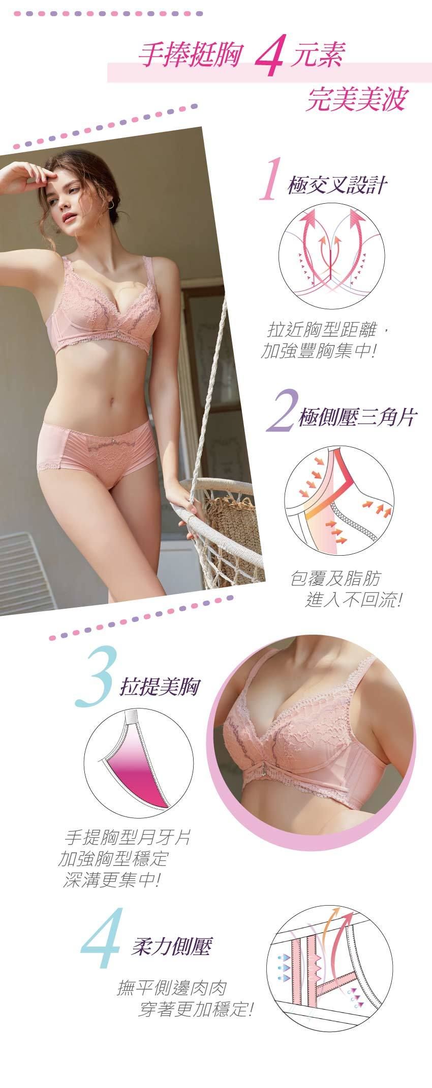 極交叉設計 / 極側壓三角片 / 拉提美胸 / 柔力側壓