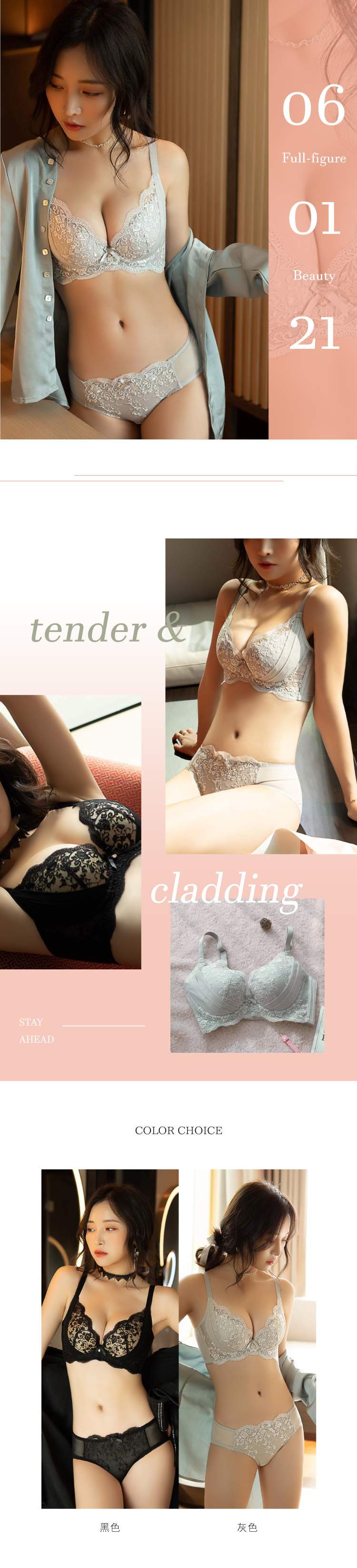 美胸拉提滿版刺繡緹花蕾絲機能包覆軟鋼圈調整型成套內衣褲
