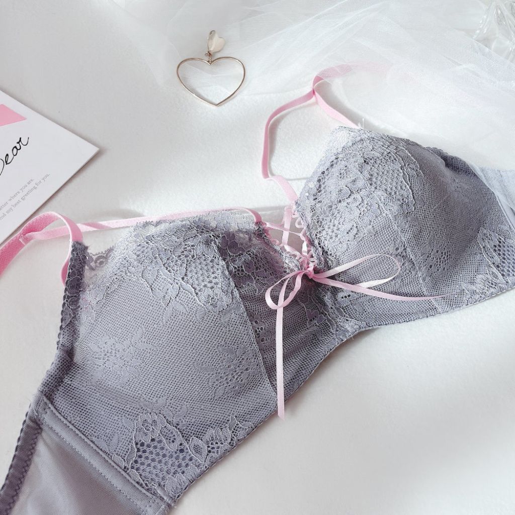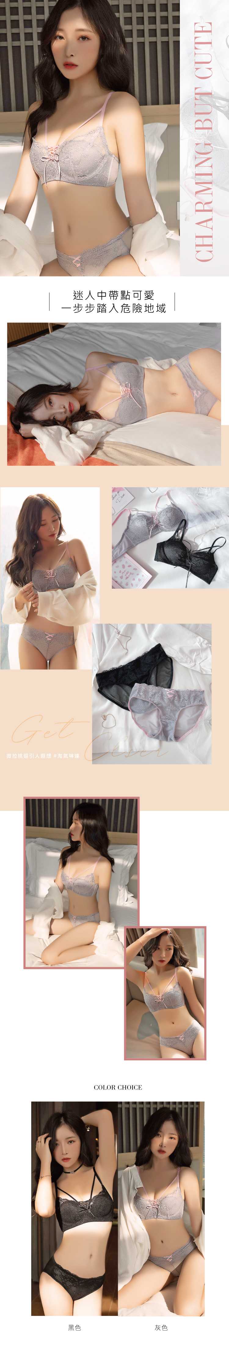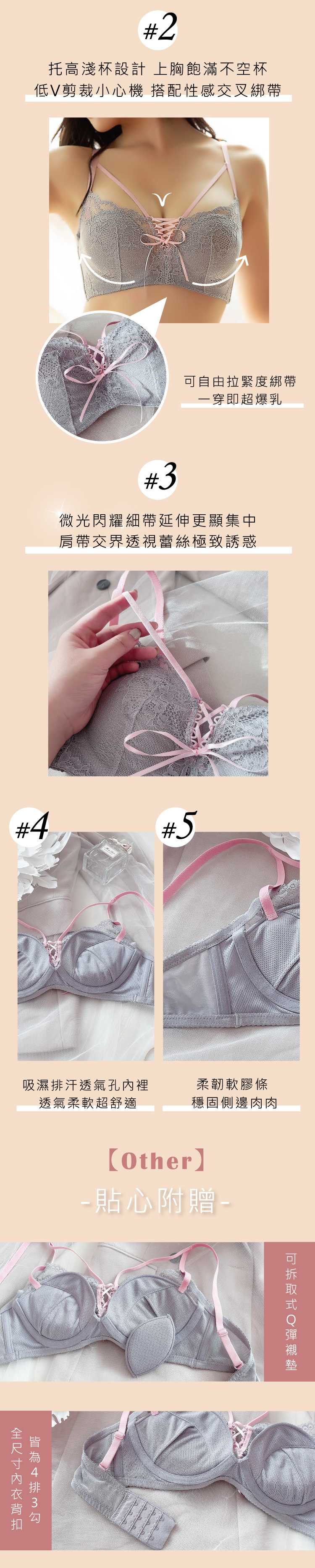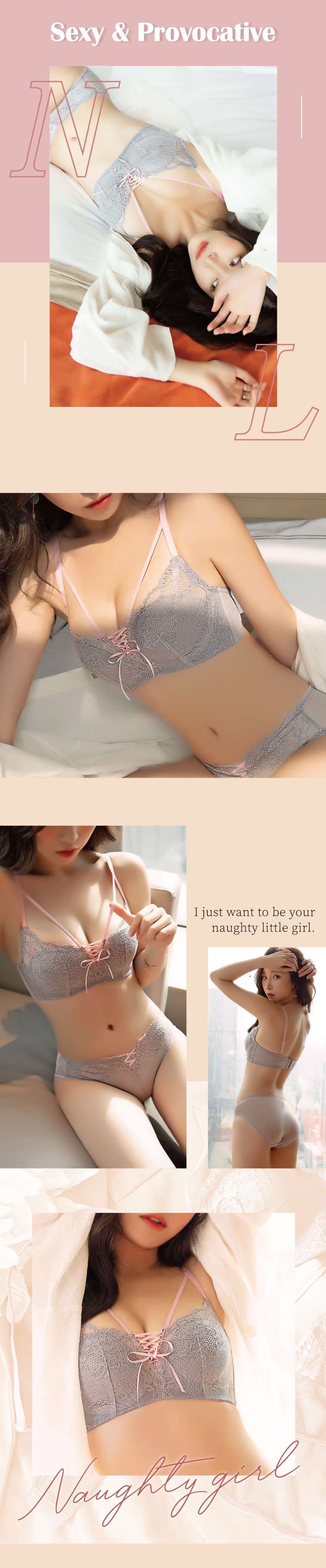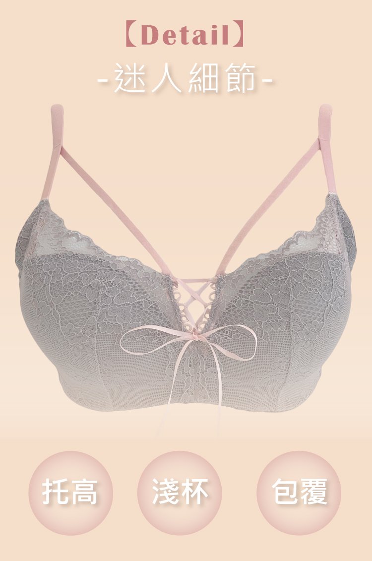軟鋼圈【獨家】淘氣琳達-Mini Queen性感交叉細綁帶舒適包覆軟鋼圈成套內衣褲(灰色65B-95F )