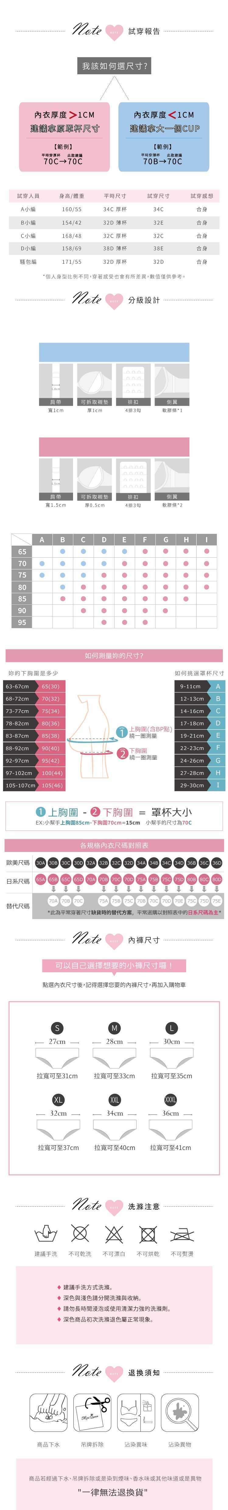 ★ 平時內衣厚度<1CM,此款選擇大一個罩杯尺寸 ★