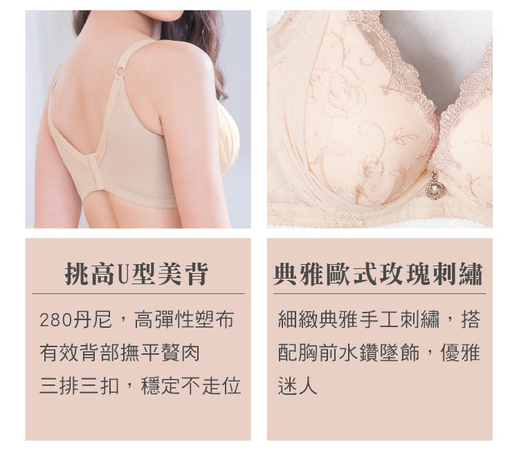 l機能l 薔薇V曲 軟鋼圈內衣 質感膚色 8019-11