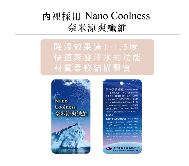 【有效降溫】採用MIT台灣製涼感機能性布料,有效降溫不悶熱