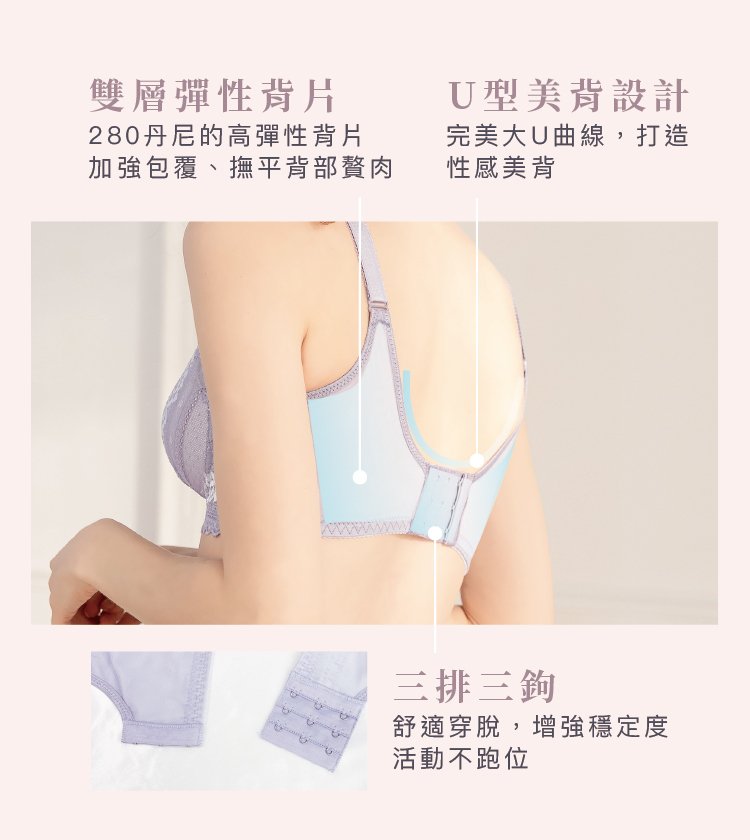 台灣製功能內衣 防外擴托高 6987 粉紫色 BCD