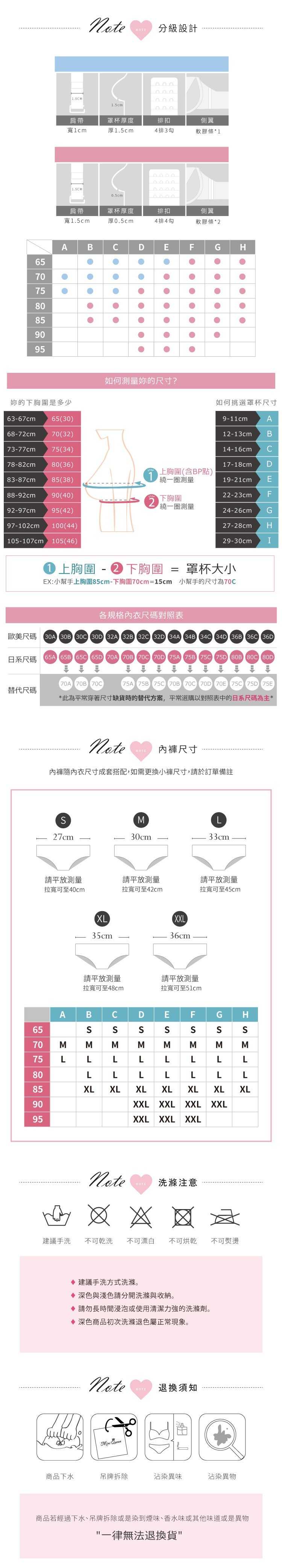 多段罩杯與下圍尺寸,滿足大小女孩需求!