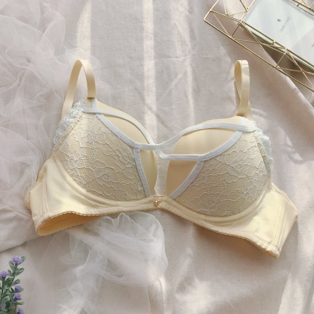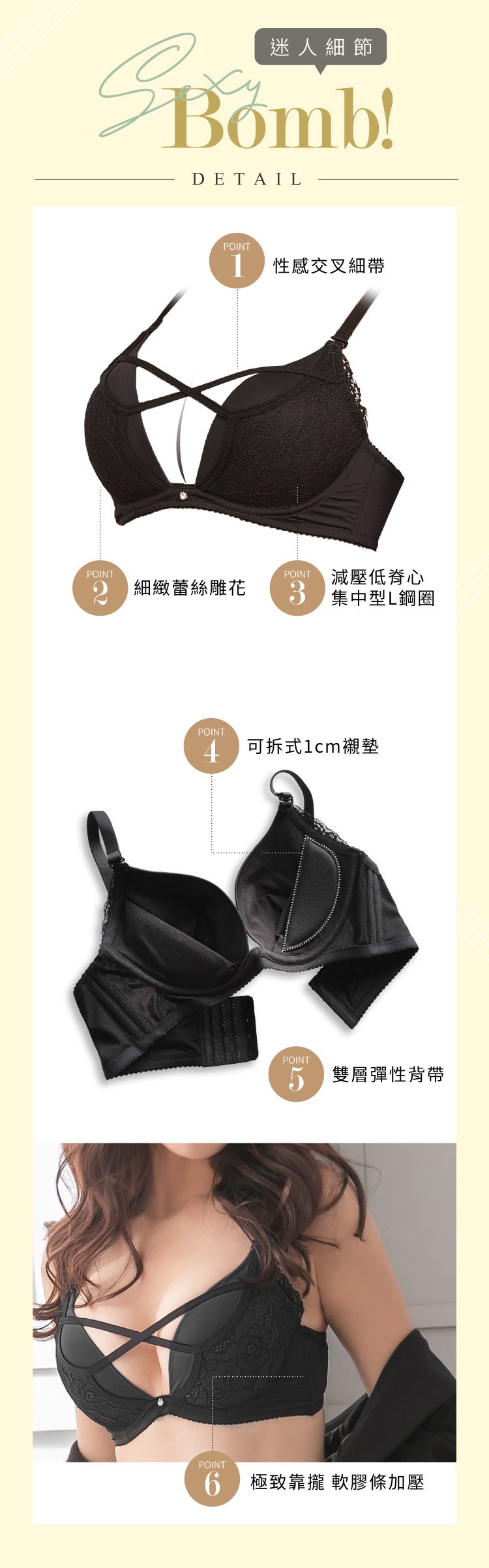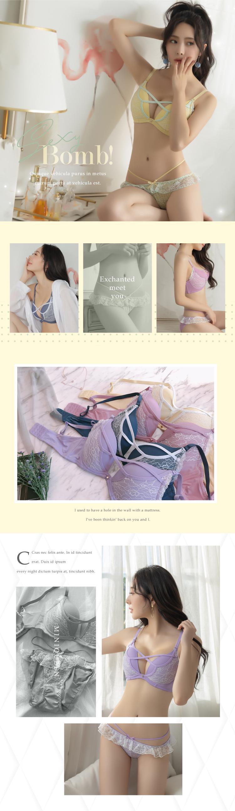 成套內衣【獨家】爆爆BABY_Mini Queen性感交叉細帶L型鋼圈集中托高日系成套內衣褲 (鵝黃65-95A-H)