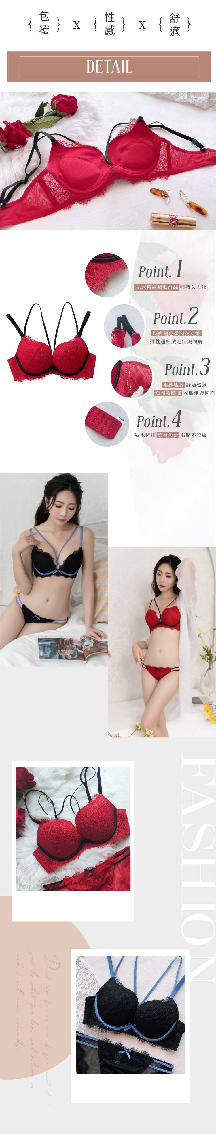 撞色交叉性感睫毛蕾絲W型鋼圈成套內衣褲