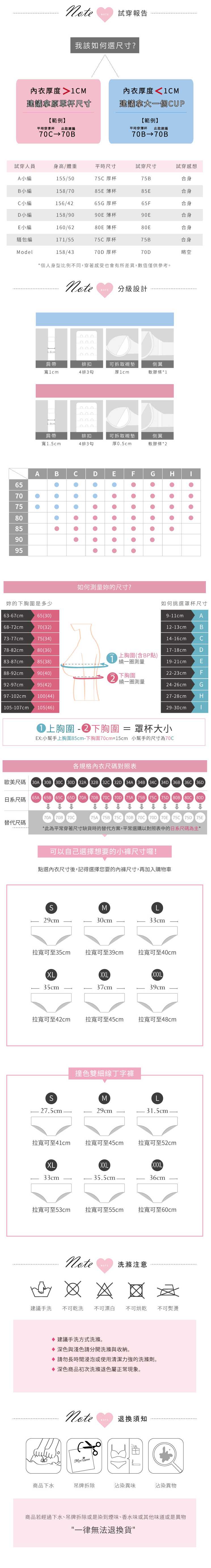 ★ 平時內衣厚度>1CM,此款選擇小一個罩杯尺寸 ★