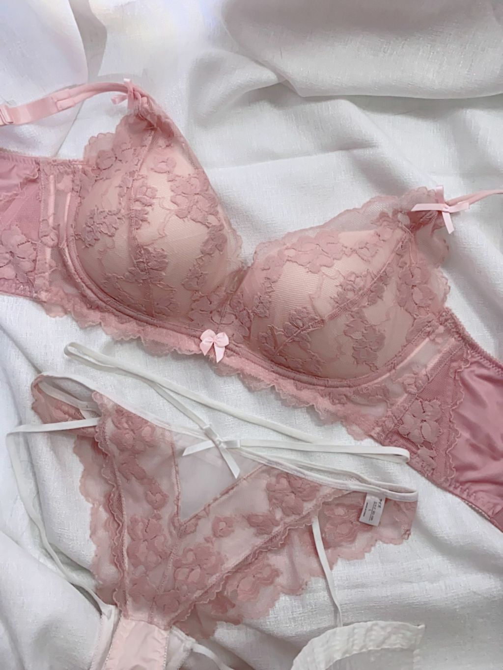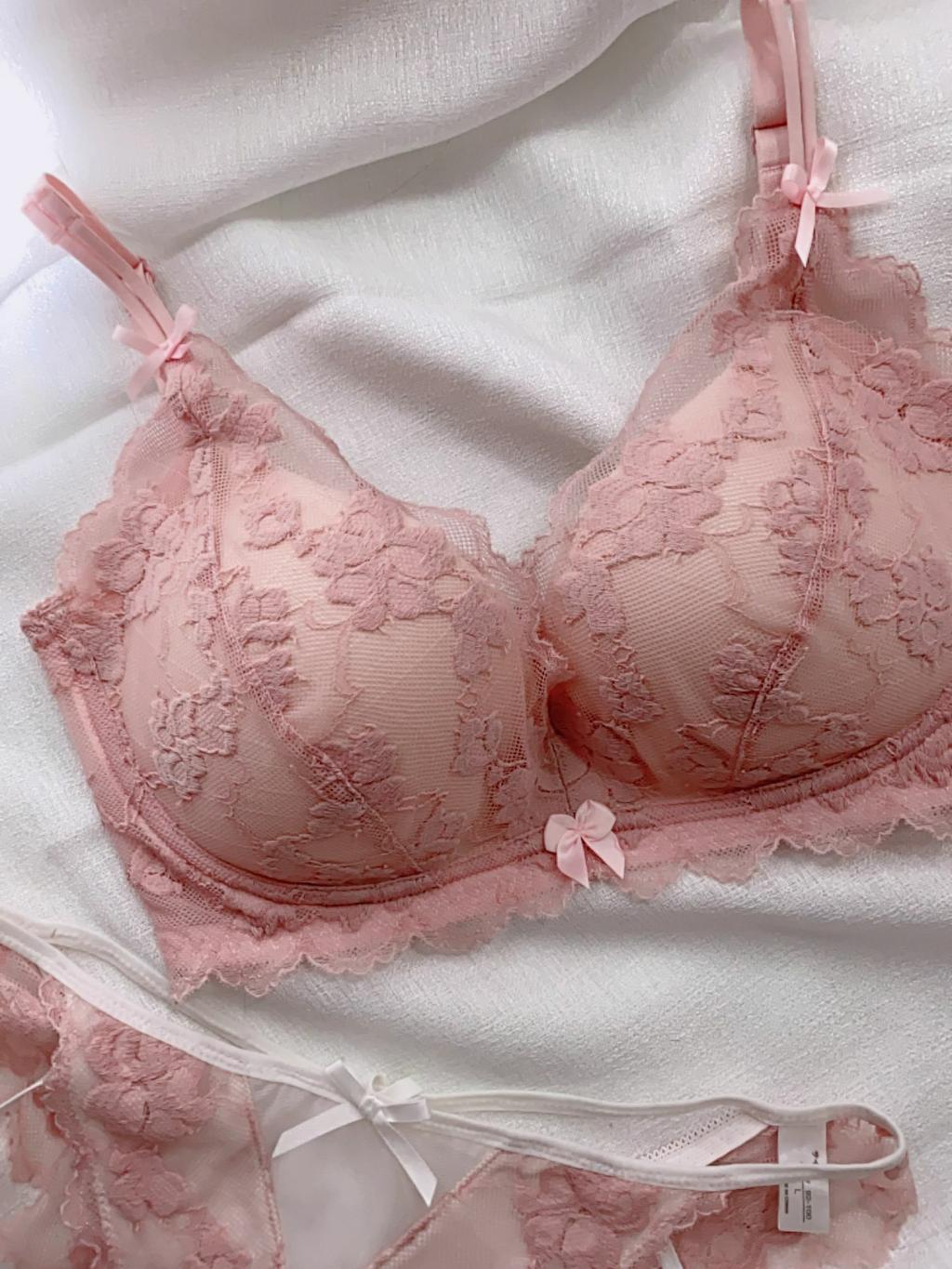 獨家訂製品 暖暖香草糖 無鋼圈內衣套裝 粉色