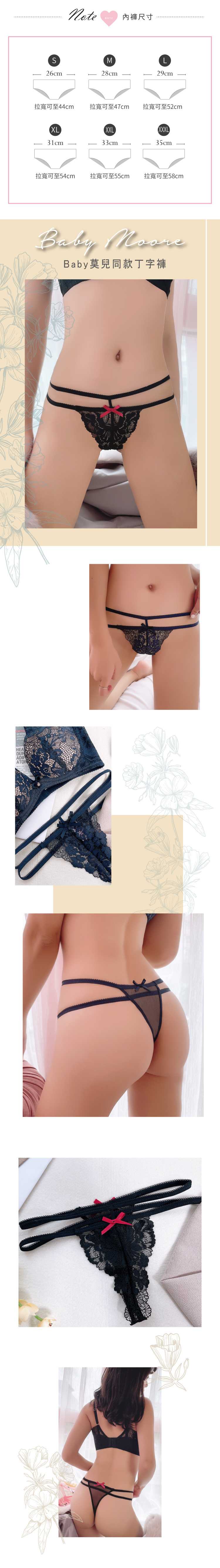 丁字褲_baby莫兒-Mini Queen鏤空花邊雙線質感緹花透膚蕾絲丁字褲(2色S-XXXL)