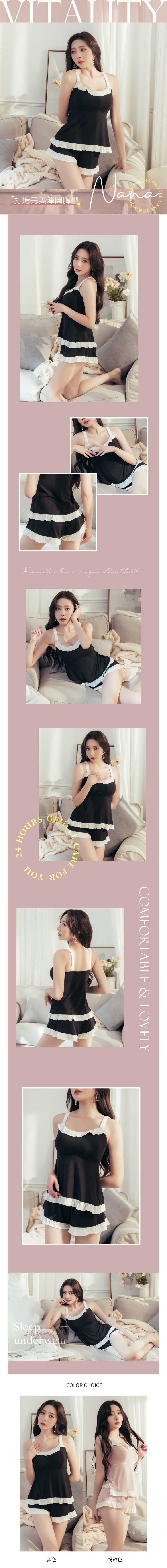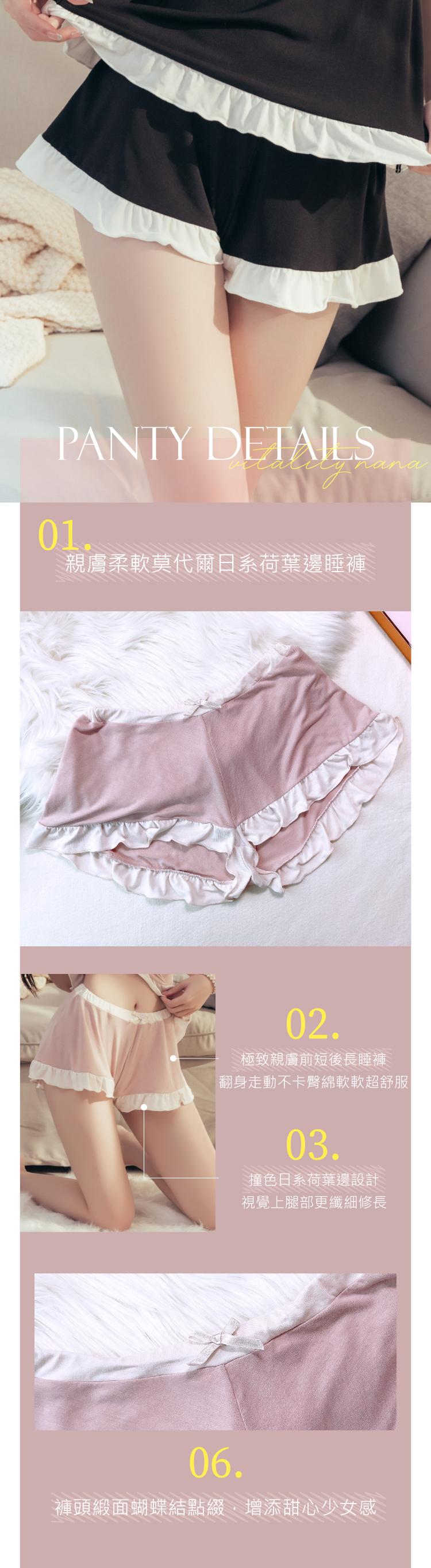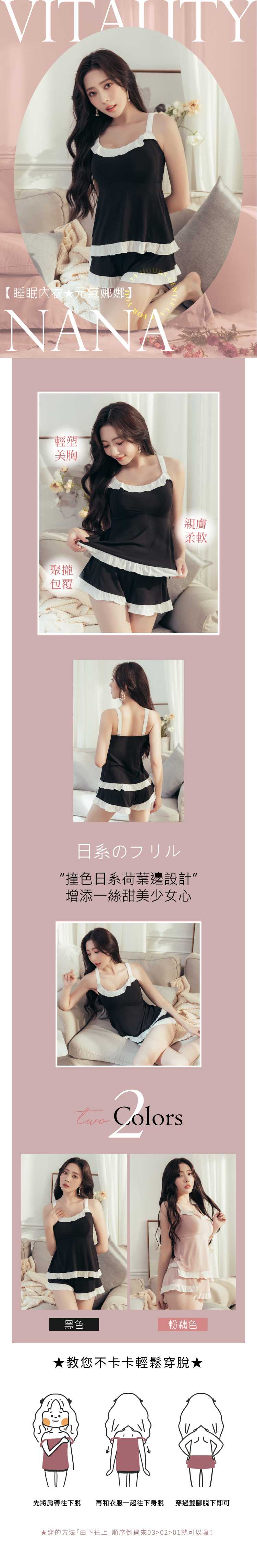 睡眠內衣-元氣娜娜-Mini Queen莫代爾日系甜美荷葉邊舒適呵護24HR睡眠成套內衣長版(黑S-4XL)