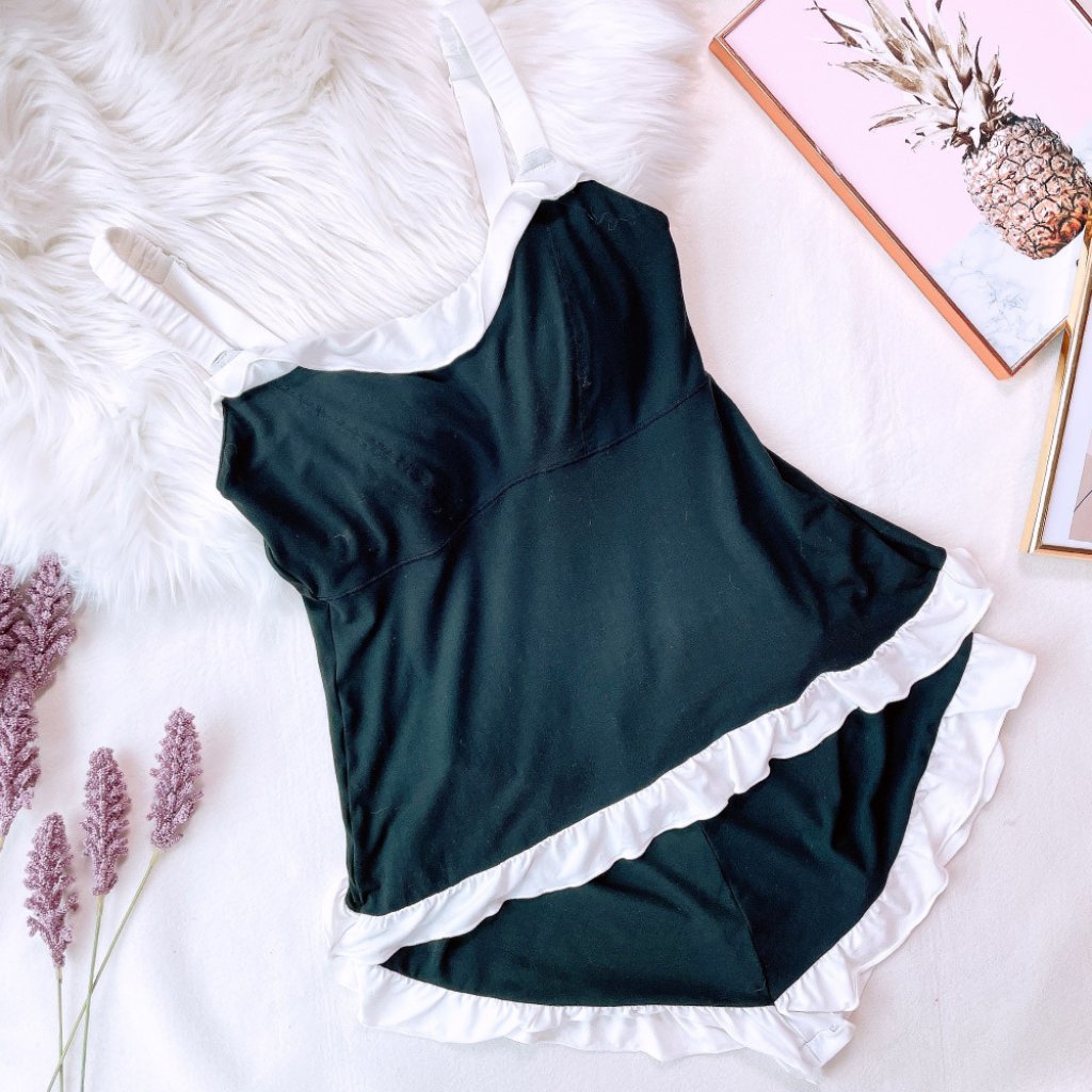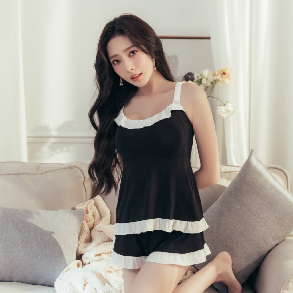 POINT [4] 撞色日系荷葉邊x顯瘦腰線剪裁設計,增添一絲性感兼甜美氛圍