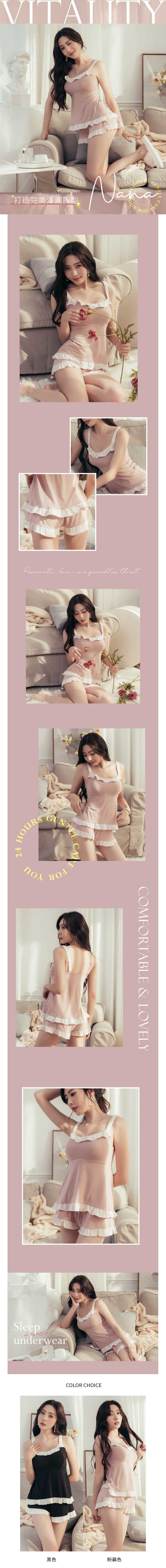 睡眠內衣-元氣娜娜-Mini Queen莫代爾日系甜美荷葉邊舒適呵護24HR睡眠成套內衣長版(粉藕S-4XL)